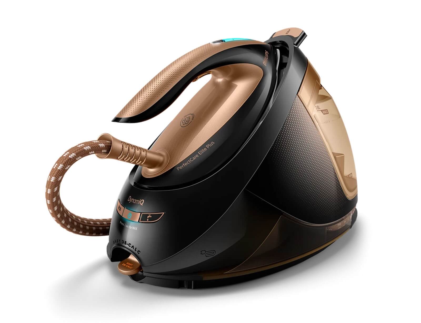 Το σίδερο PerfectCare Elite Plus είναι η γεννήτρια ατμού που προσφέρει ευκολότερο σιδέρωμα και γρηγορότερα αποτελέσματα χάρη στο εξαιρετικά ελαφρύ σίδερο και την έξυπνη αυτόματη παροχή ατμού, για απόλυτη άνεση. Δεν απαιτούνται ρυθμίσεις θερμοκρασίας, εγγυημένα χωρίς καψίματα.