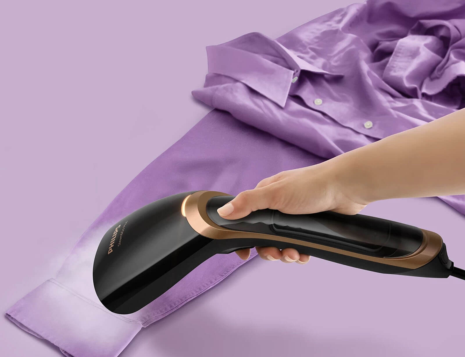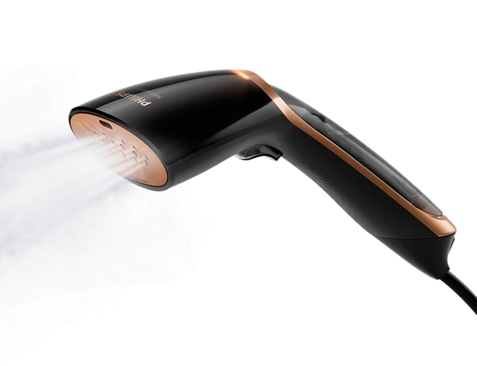 Το σύστημα ατμού χειρός είναι εργονομικά σχεδιασμένο ώστε να είναι ελαφρύ, μικρό και άνετο στη χρήση. Απλώς πιέστε το κουμπί και δείτε τις τσακίσεις και τις ζάρες να εξαφανίζονται.