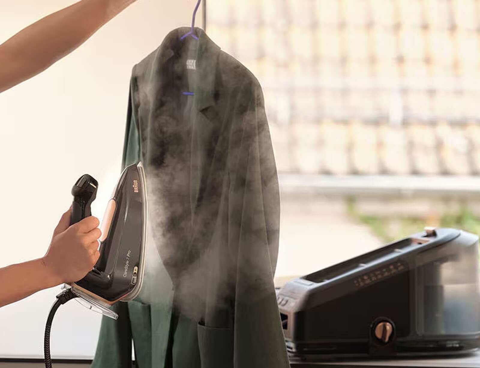 Ο ισχυρός συνεχής ατμός του κάνει τον κάθετο ατμό από κουρτίνες και κρεμασμένα ρούχα πολύ εύκολο.
