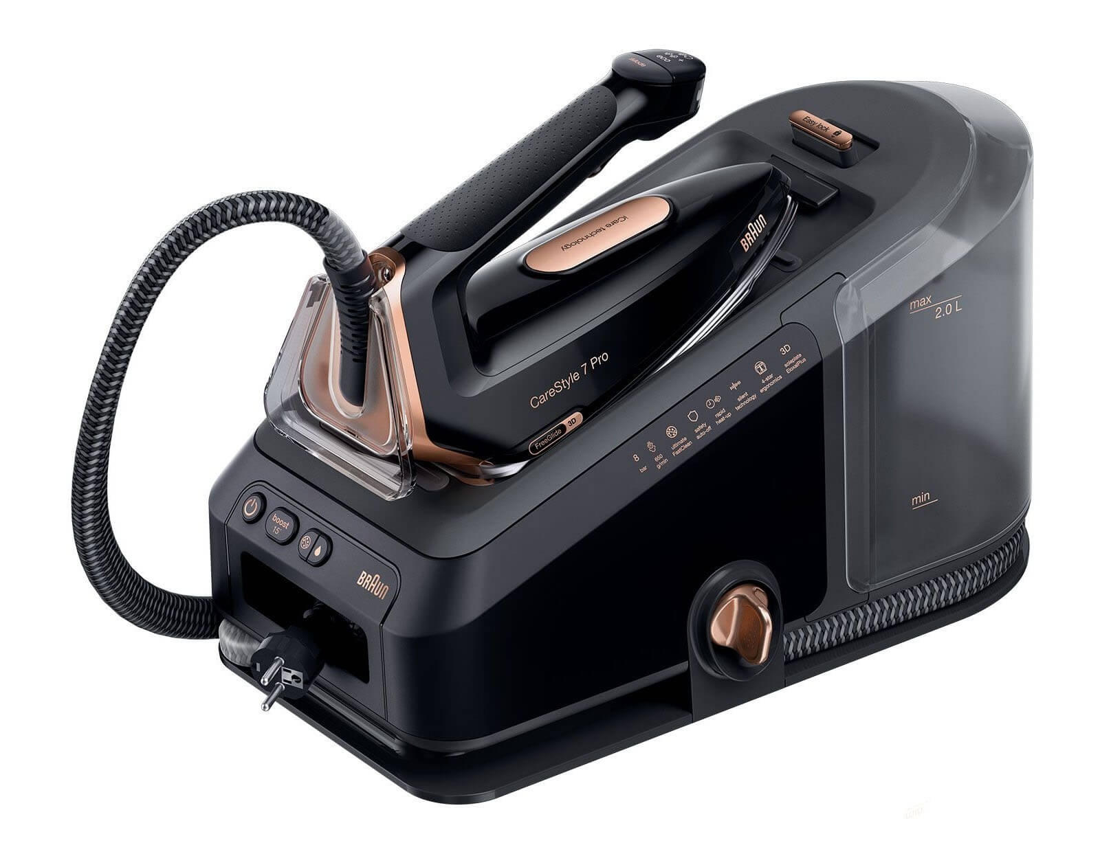 Σύστημα σιδερώματος Braun CareStyle 7 IS7286BK με ισχύ 2700W, πίεση 8bar και χωρητικότητα 2L