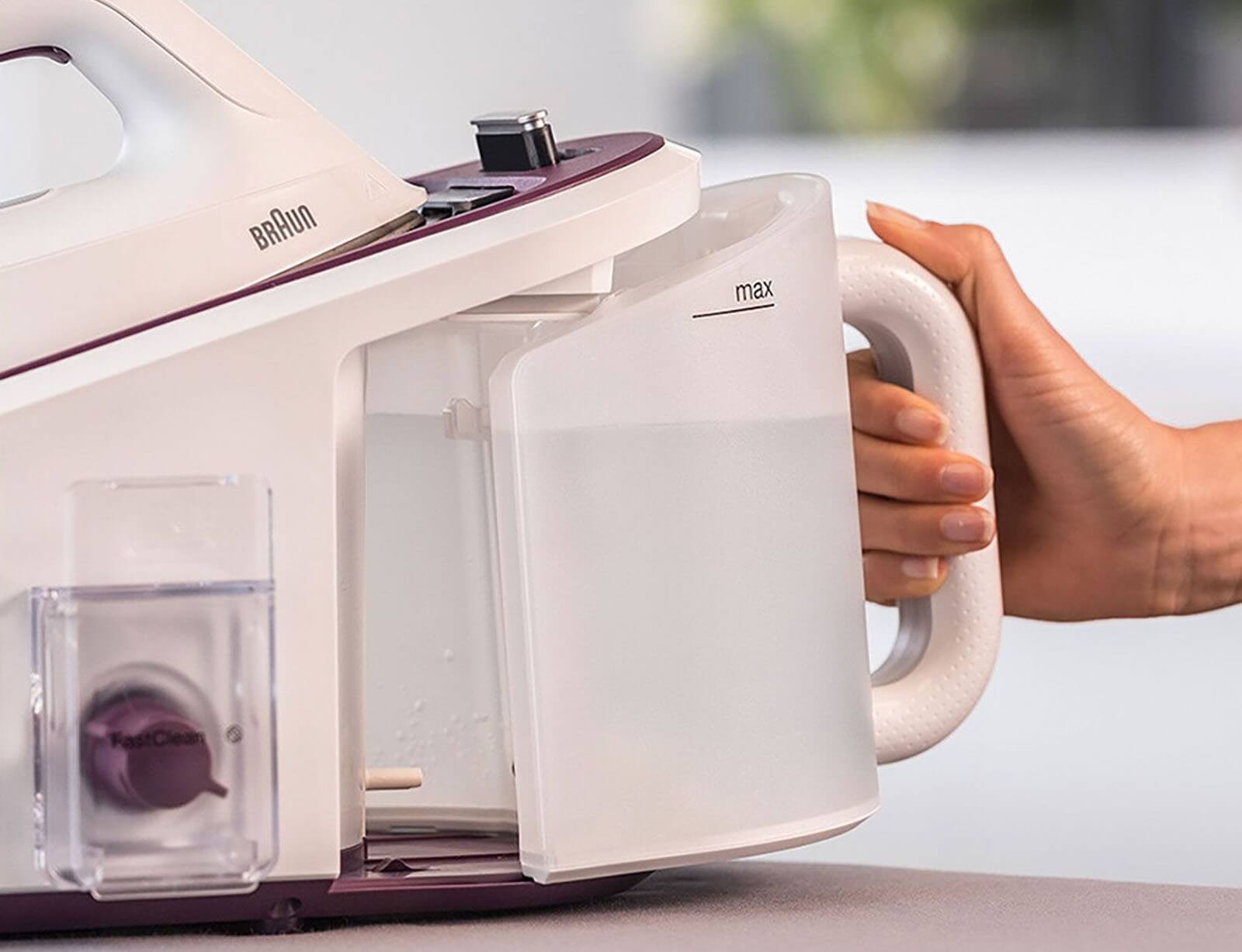 Το πλεονέκτημα ενός ιδιαίτερα μεγάλου αποσπώμενου δοχείου νερού είναι οι λιγότερες διακοπές και η μεγαλύτερη αυτονομία. Το δοχείο των 2 λίτρων διαθέτει φινίρισμα λαβής που προσφέρει περισσότερη άνεση και βέλτιστο έλεγχο. Η μεγάλη οπή πλήρωσης κάνει το γέμισμα του δοχείου από τη βρύση εύκολο και γρήγορο.