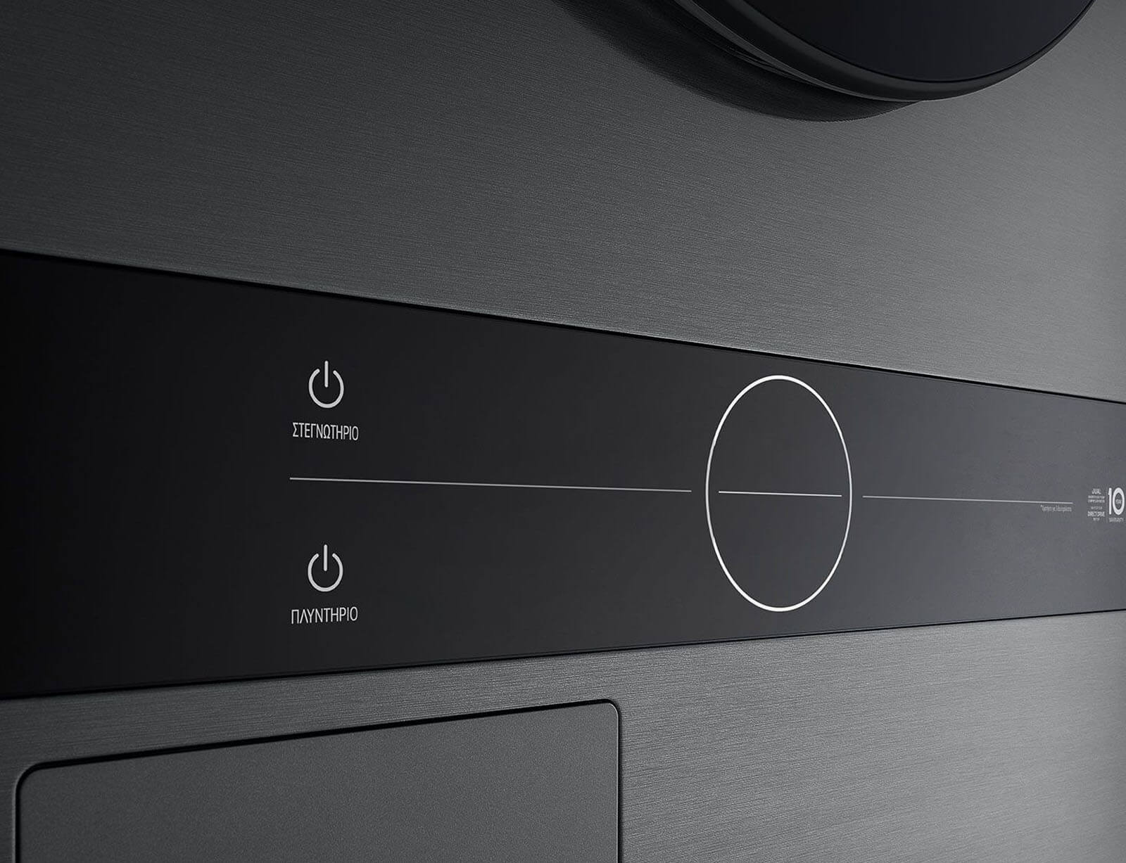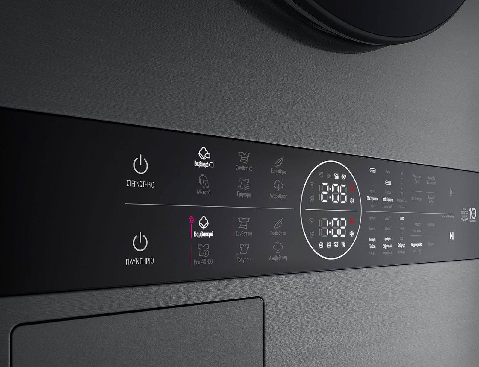 Σε σύγκριση με ξεχωριστό πλυντήριο και στεγνωτήριο, αυτό το μοντέλο είναι 45 mm πιο κοντό, με τον πίνακα ελέγχου Center Control τοποθετημένο 85 mm ψηλότερα.