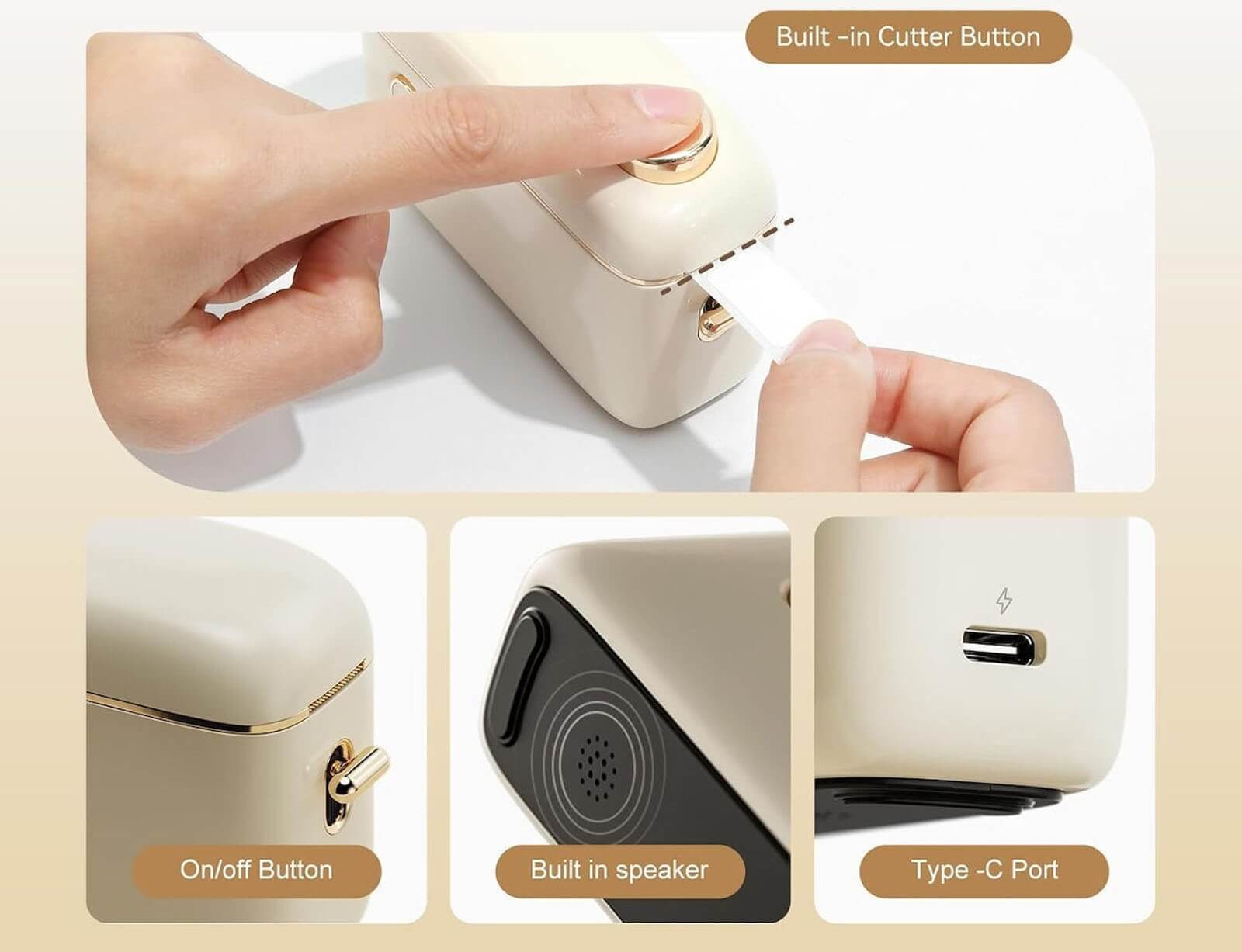 Ο εκτυπωτής λειτουργεί με τη συσκευή της επιλογής σας μέσω Bluetooth, δίνοντάς σας πλήρη ελευθερία κατά το σχεδιασμό. Είναι εξοπλισμένος με μια ισχυρή μπαταρία 1000 mAh, ώστε να μπορείτε να ξεχάσετε τη συχνή φόρτιση. Θα μπορείτε να αναπληρώσετε την ενέργεια του εκτυπωτή σε μόλις 2-3 ώρες, χρησιμοποιώντας το καλώδιο USB-C που θα βρείτε στη συσκευασία.