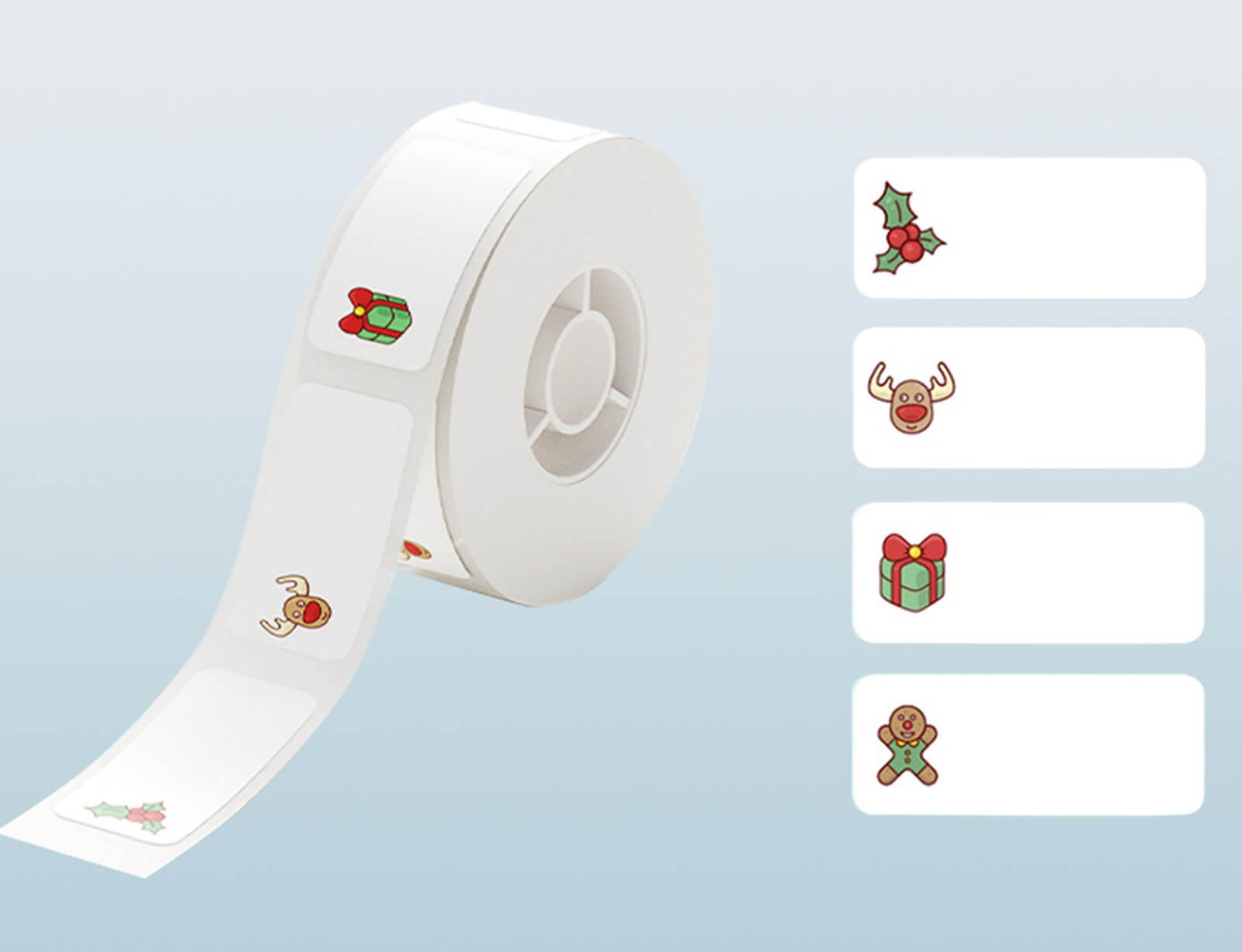 Το σετ περιλαμβάνει ένα ρολό που σας επιτρέπει να εκτυπώσετε 210 τεμάχια ετικετών 12 x 30mm. Είναι συμβατό με τους θερμικούς εκτυπωτές Niimbot της σειράς B18. Θα σας φανεί χρήσιμο για την εκτύπωση τιμών, ημερομηνιών λήξης, κωδικών QR και EAN, emoticons, σειριακών αριθμών, πινάκων κ.ά. Το χριστουγεννιάτικο μοτίβο των αυτοκόλλητων θα σας βάλει ακόμα περισσότερο στο πνεύμα των Χριστουγέννων!