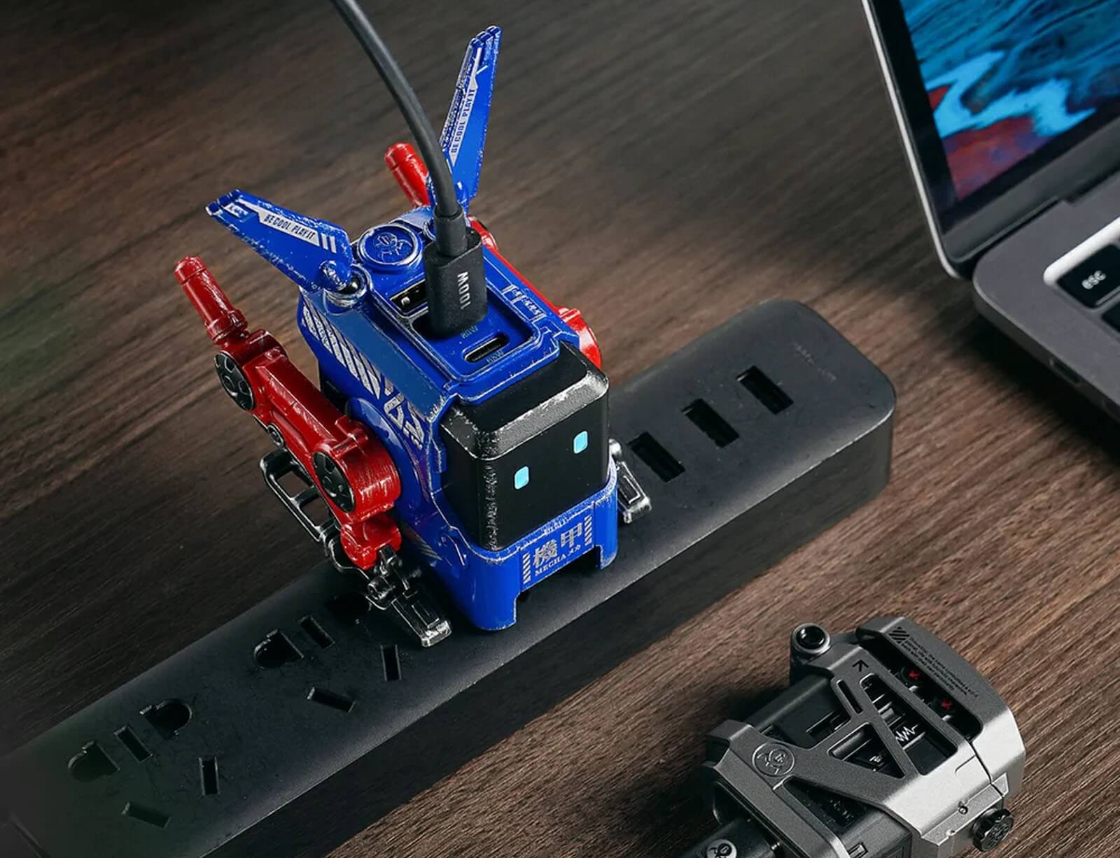 Ακόμα και όταν δεν τροφοδοτεί τις συσκευές σας, το Alpha65 σας εξακολουθεί να είναι ο τέλειος μικρός σύντροφος στην επιφάνεια εργασίας. Μόλις ολοκληρωθεί η φόρτιση, τα πόδια του mecha walker μπορούν να μετατραπούν από καθιστό σε όρθιο και το βύσμα ρεύματος διπλώνει σε ένα κρυφό άνοιγμα μέχρι να το χρειαστείτε ξανά.
