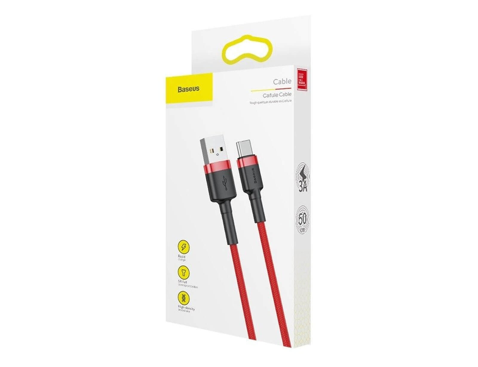 Καλώδιο Baseus Cafule USB σε USB-C με πλεκτό περίβλημα - 3A - Μήκος καλωδίου 1m - Κόκκινο