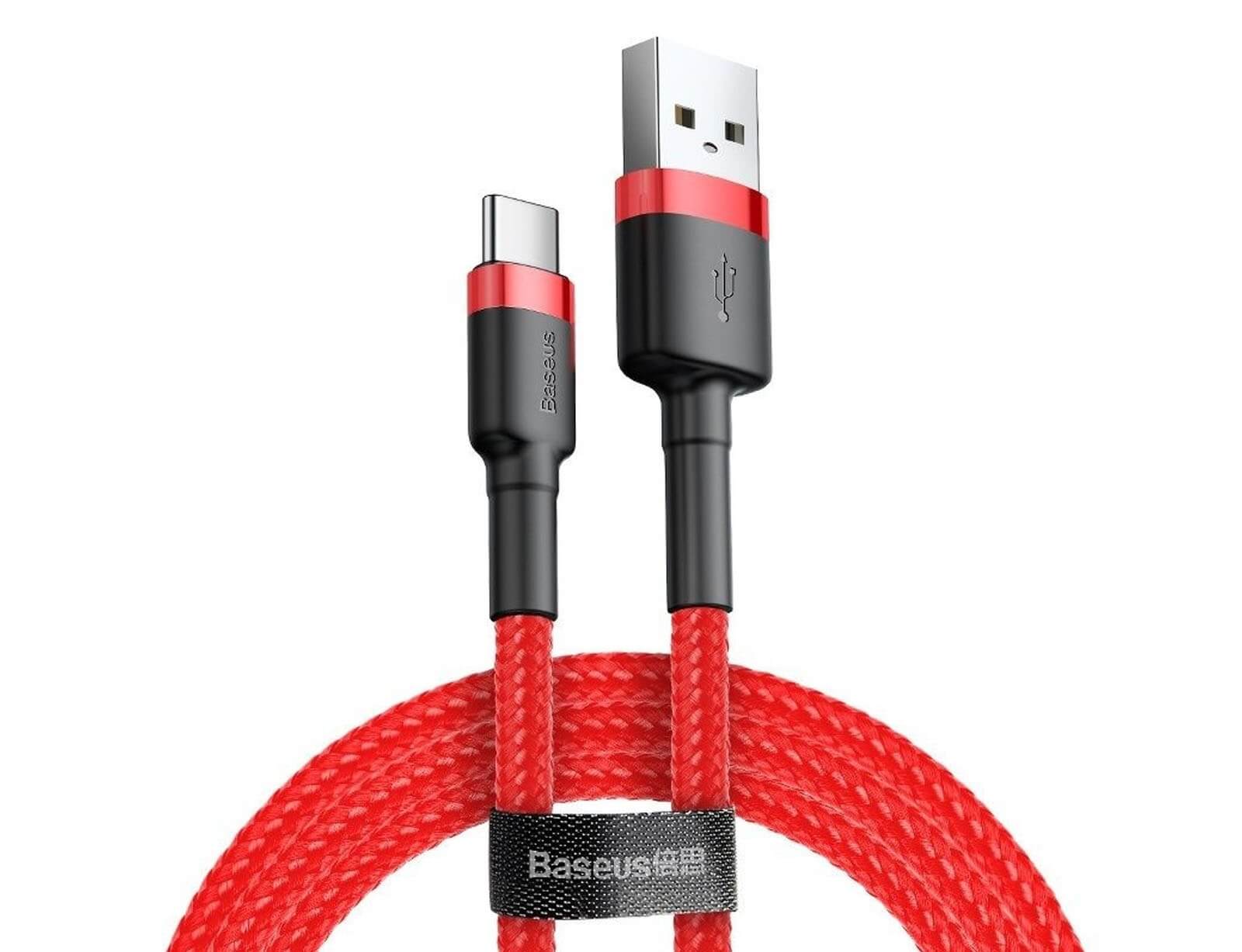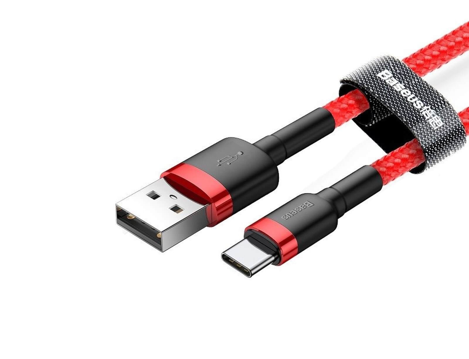 Καλώδιο Baseus Cafule USB σε USB-C με πλεκτό περίβλημα - 2A - Μήκος καλωδίου 2m - Kόκκινο