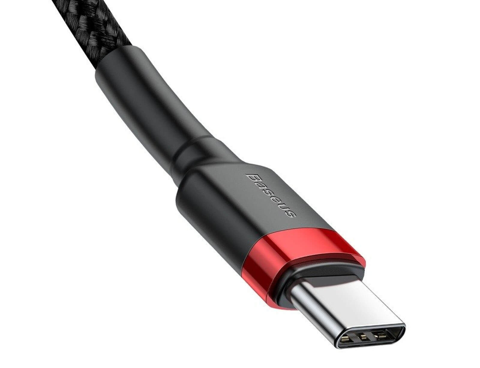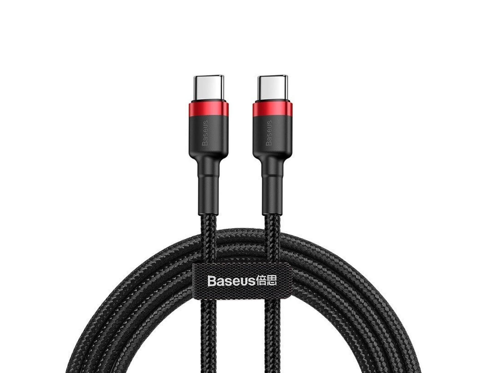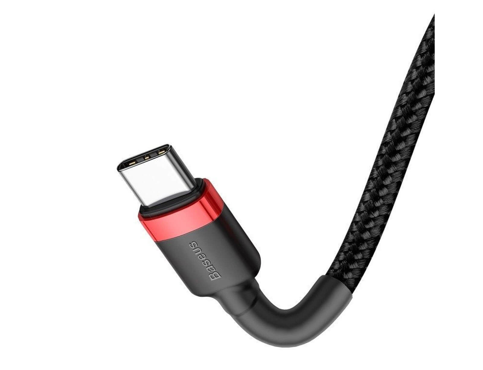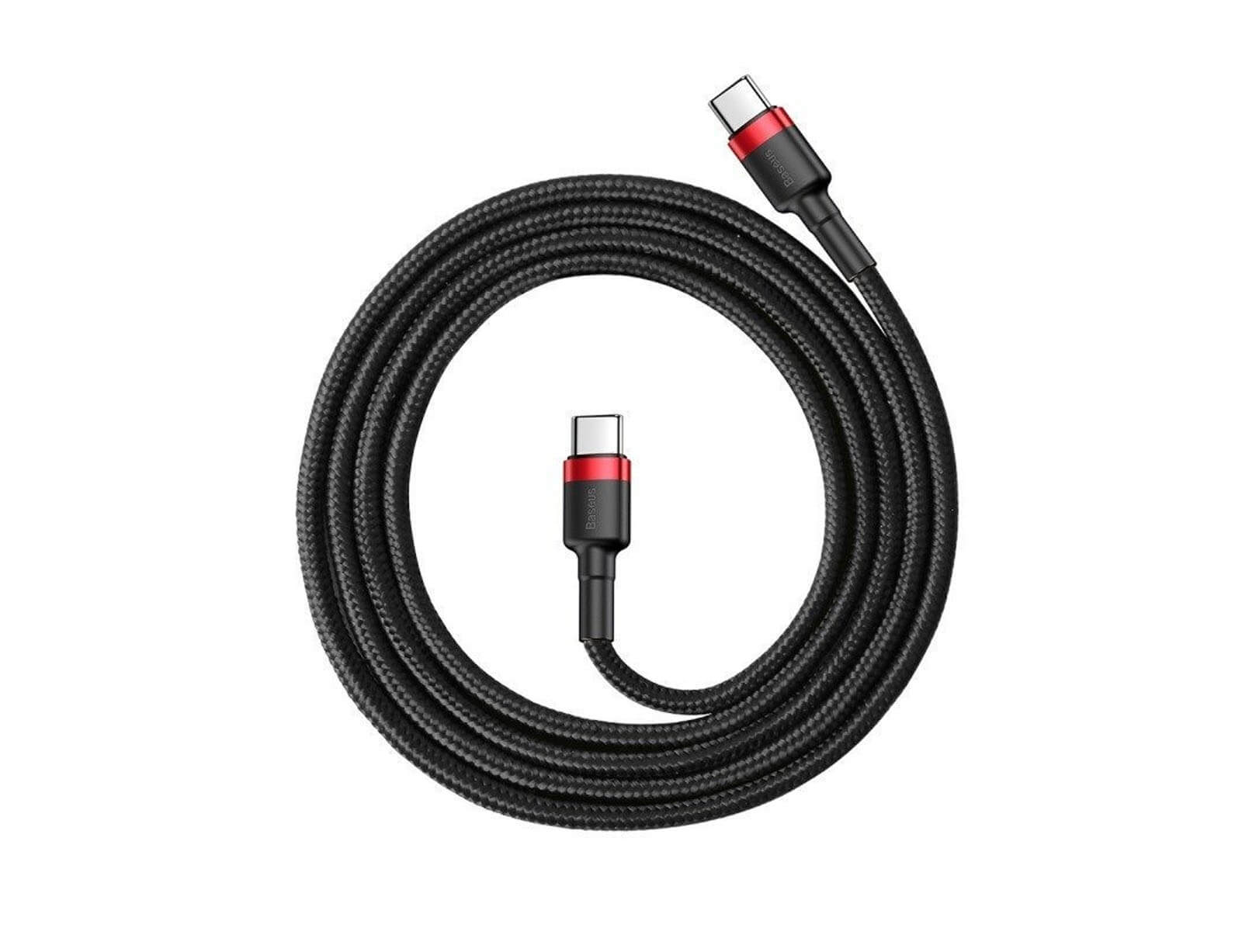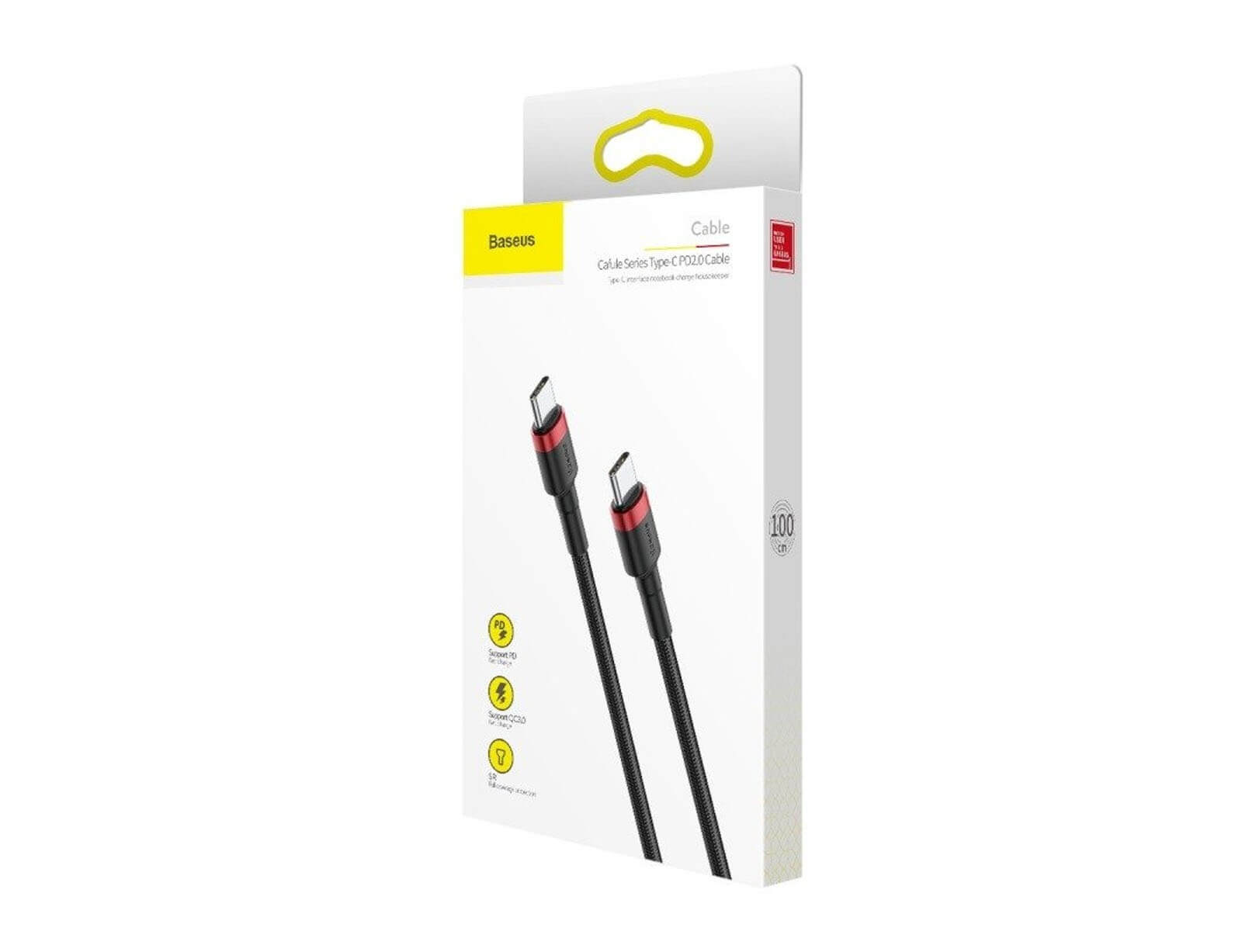 Καλώδιο Baseus Cafule USB-C σε USB-C με πλεκτό περίβλημα - 60W - Μήκος καλωδίου 1m - Κόκκινο/Μαύρο