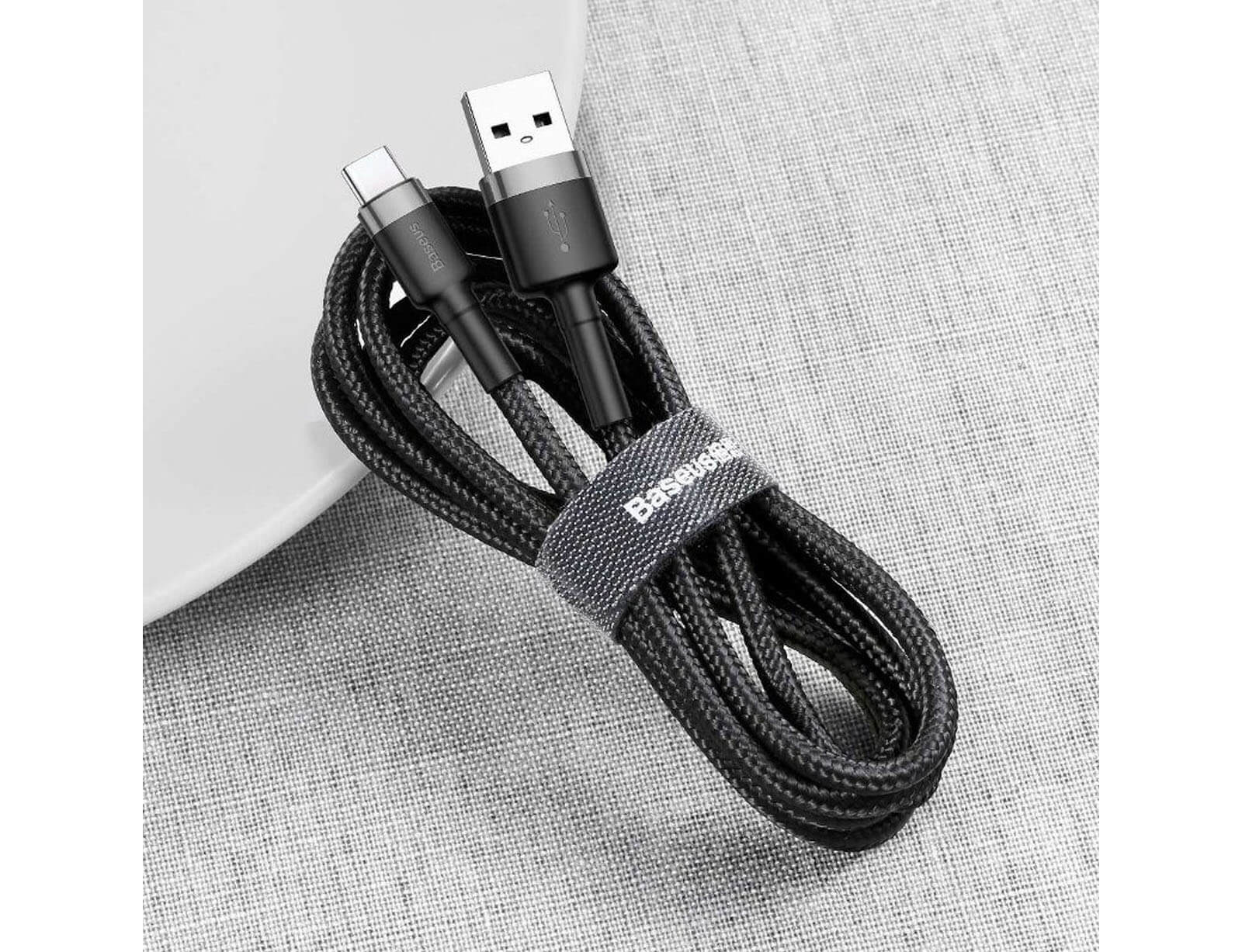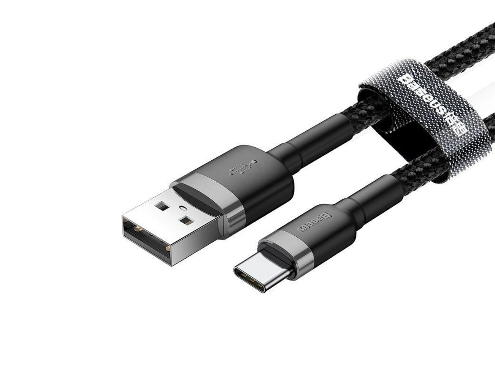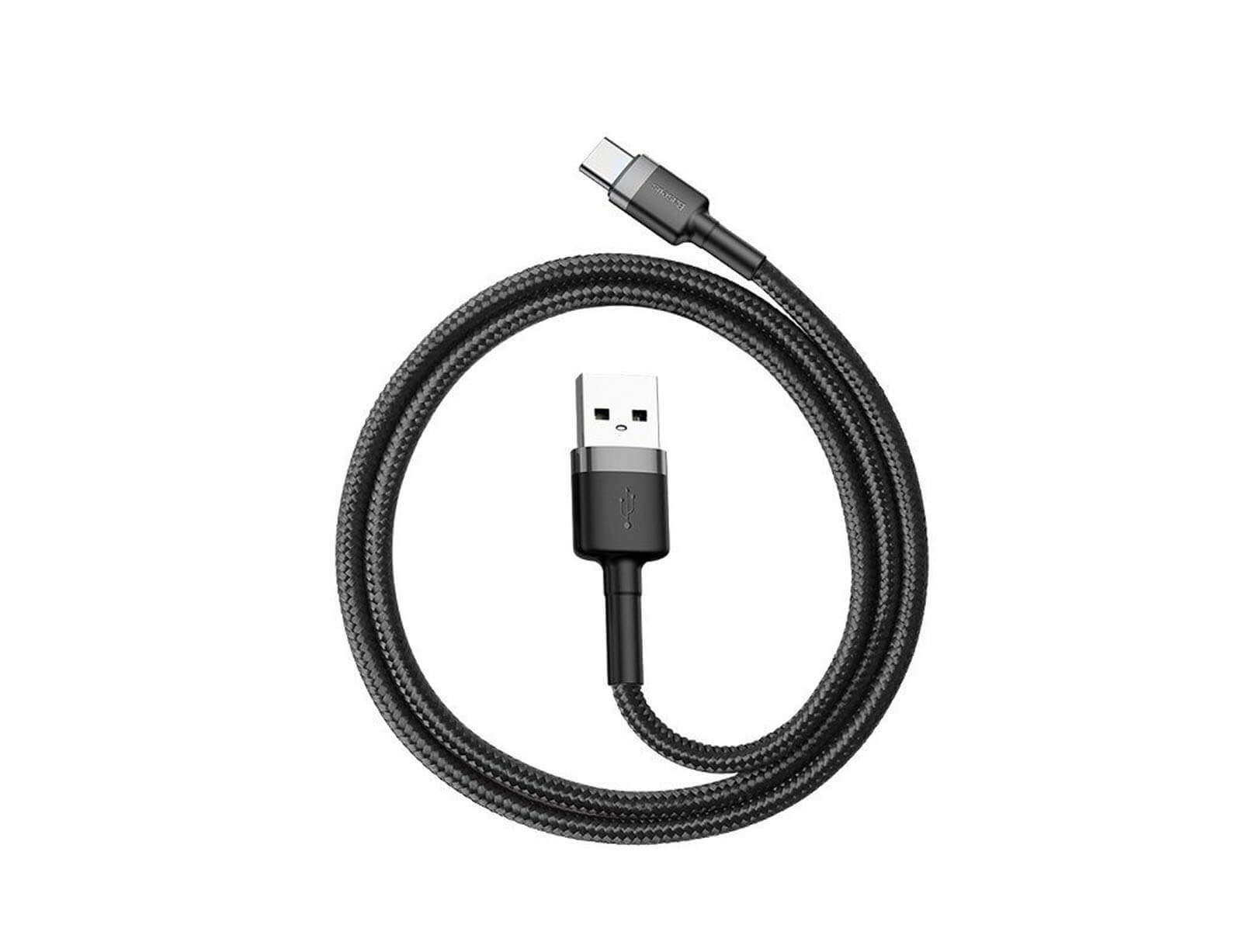 Καλώδιο Baseus Cafule USB σε USB-C με πλεκτό περίβλημα - 2A - Μήκος καλωδίου 3m - Μαύρο/Γκρι