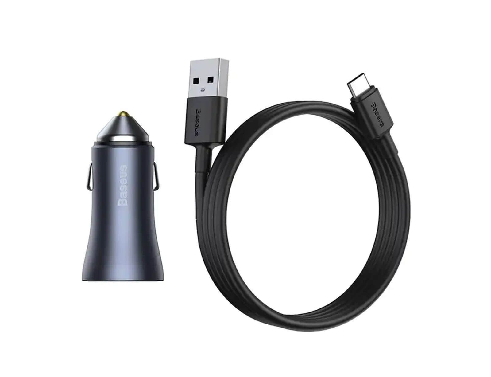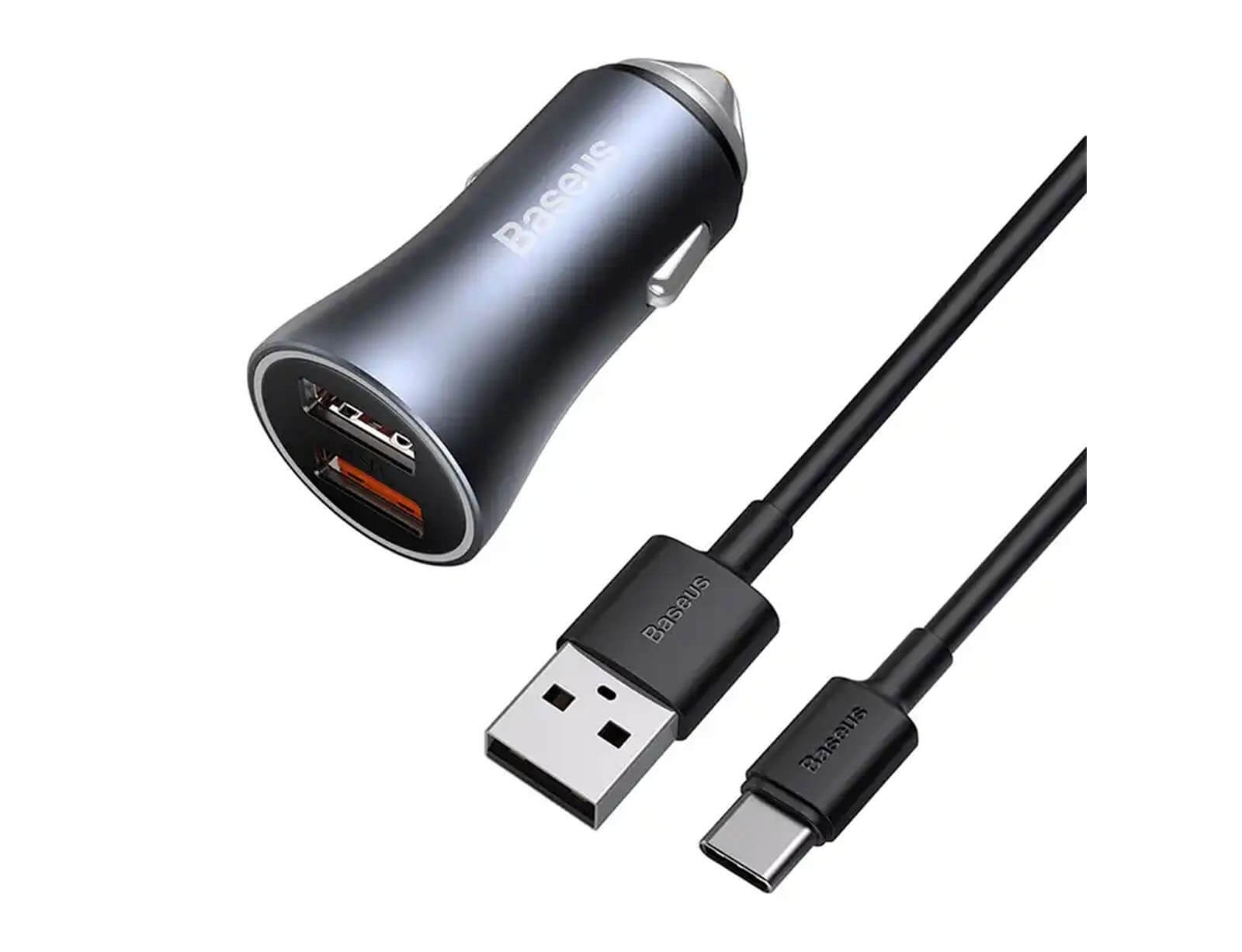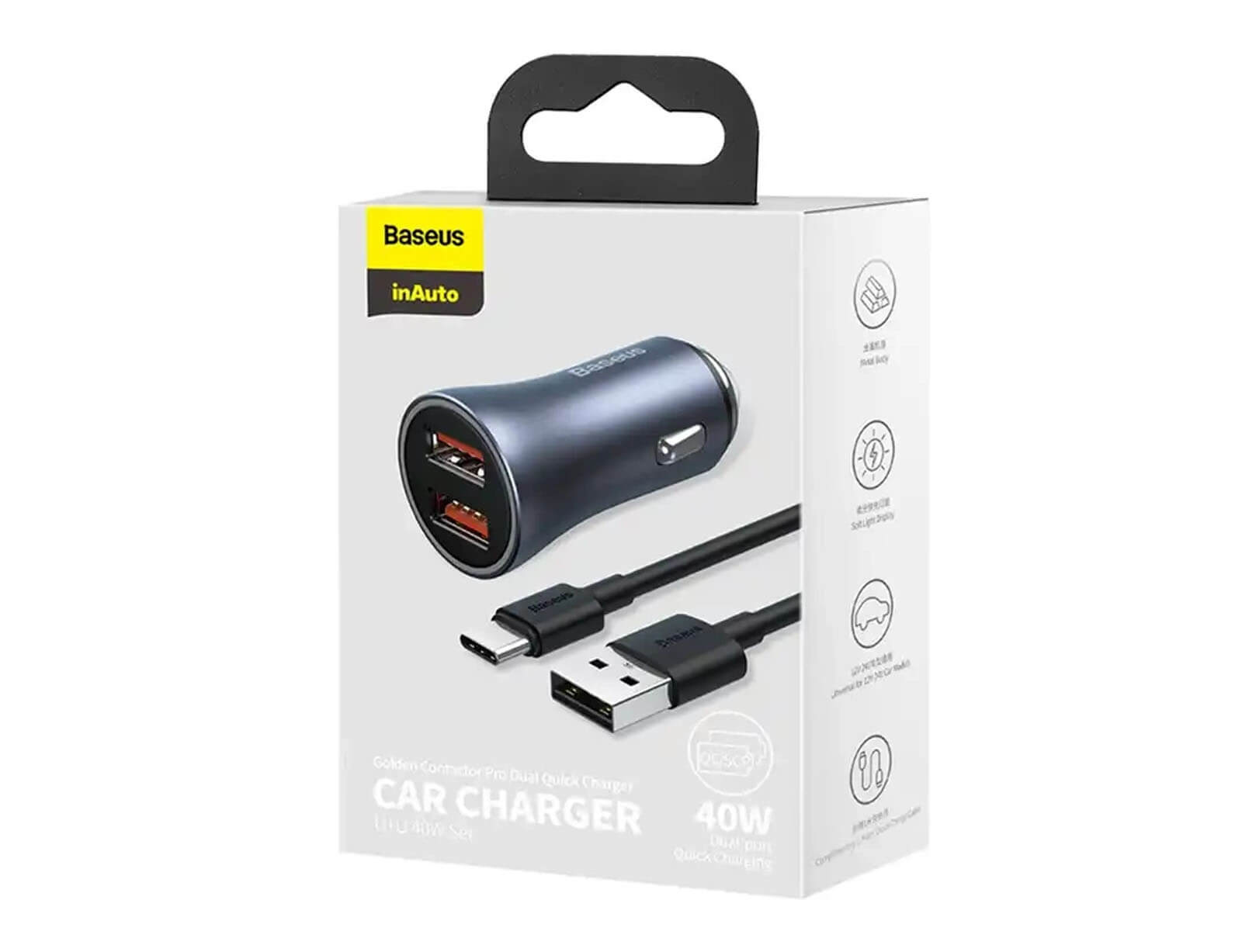 Φορτιστής Αυτοκινήτου Baseus Golden Contactor Pro με Καλώδιο USB σε USB-C μήκους 1m - 40W - 2x USB - A - Γκρι/Μαύρο