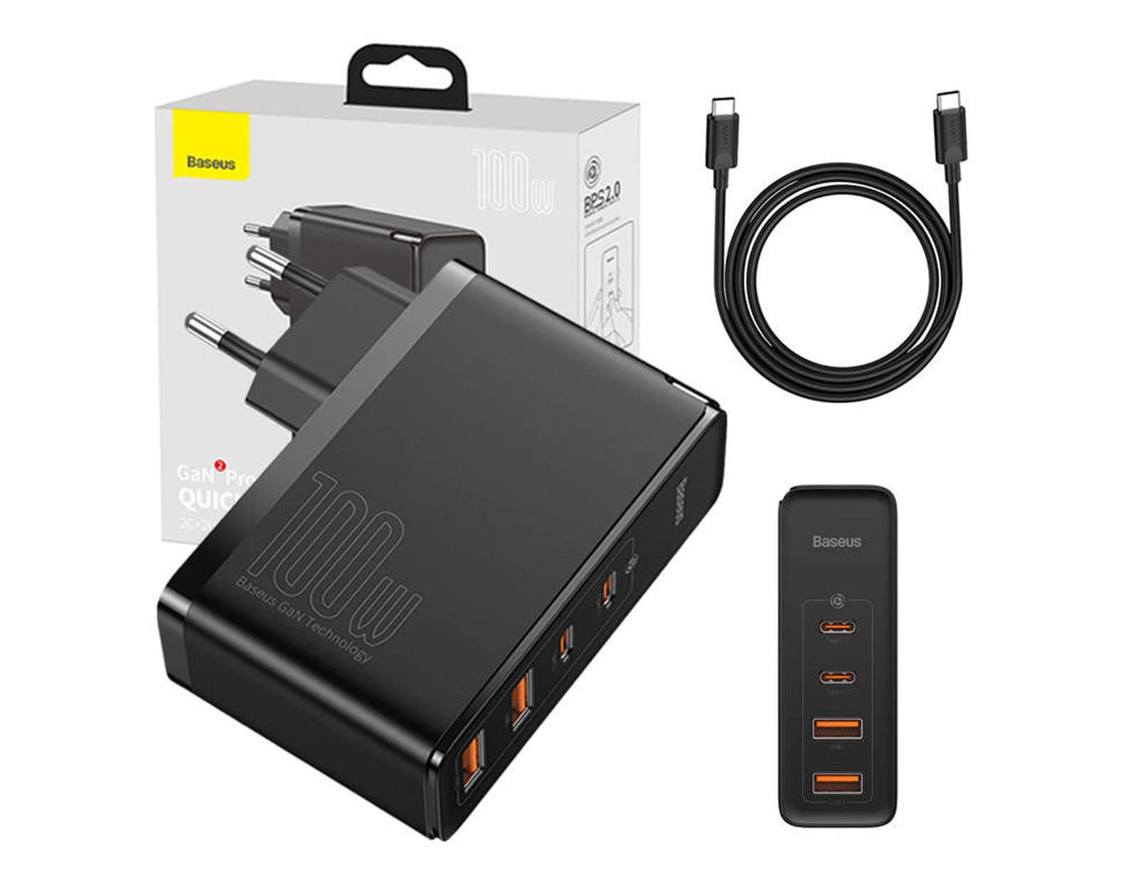 Φορτιστής Ταξιδιού Baseus GaN2 Pro Quick - 100W - 2x USB, 2x USB-C - Μαύρο