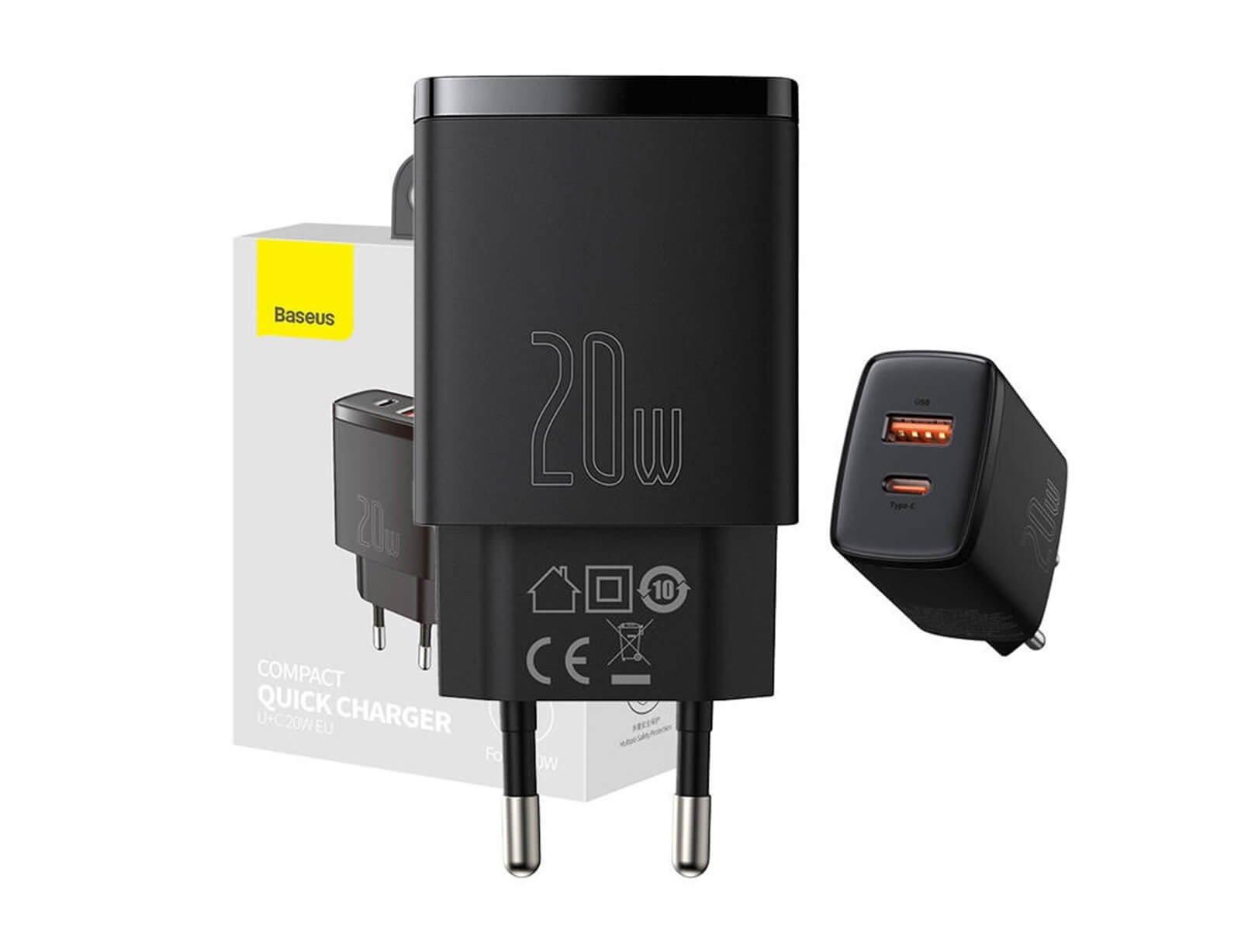 Φορτιστής Baseus Compact Quick Charger USB, USB-C - 20W - Μαύρο