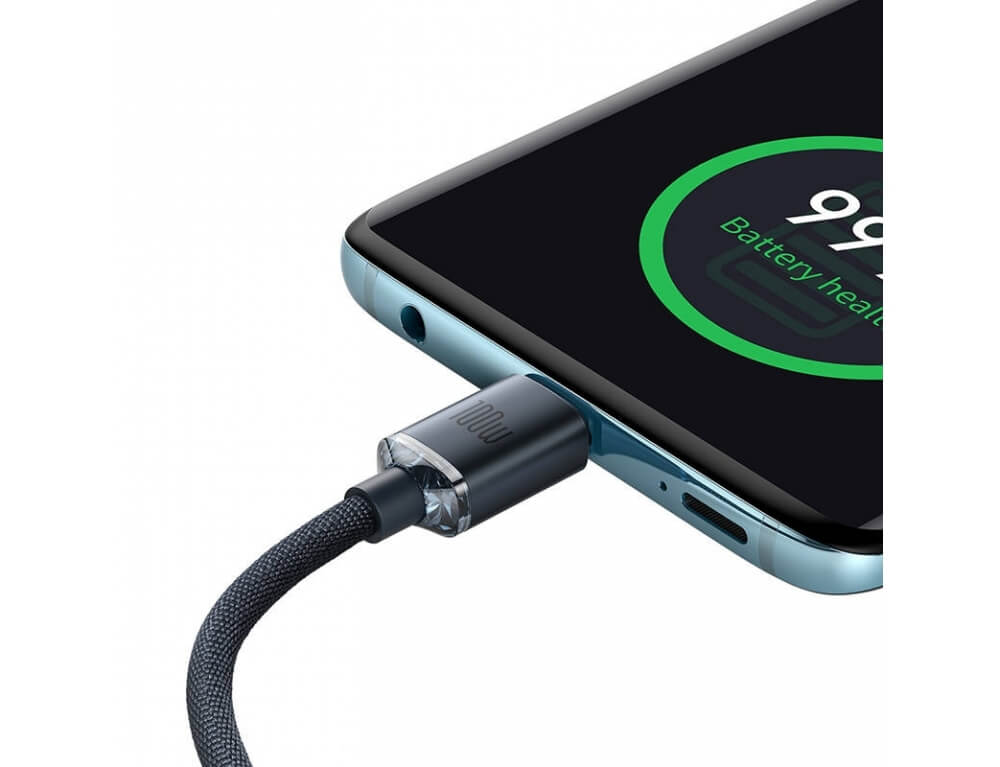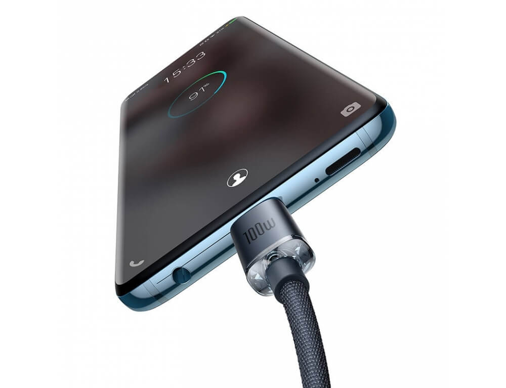 Σας παρουσιάζουμε το καλώδιο γρήγορης φόρτισης και μεταφοράς δεδομένων Baseus Crystal Shine. Χάρη στην καθολική έξοδο USB-C μπορείτε να φορτίζετε εύκολα το τηλέφωνό σας ή τον φορητό σας υπολογιστή. Η μέγιστη ισχύς των 100W σας επιτρέπει να αναπληρώνετε άμεσα την ενέργεια της συσκευής σας και να μεταφέρετε εξίσου γρήγορα δεδομένα.