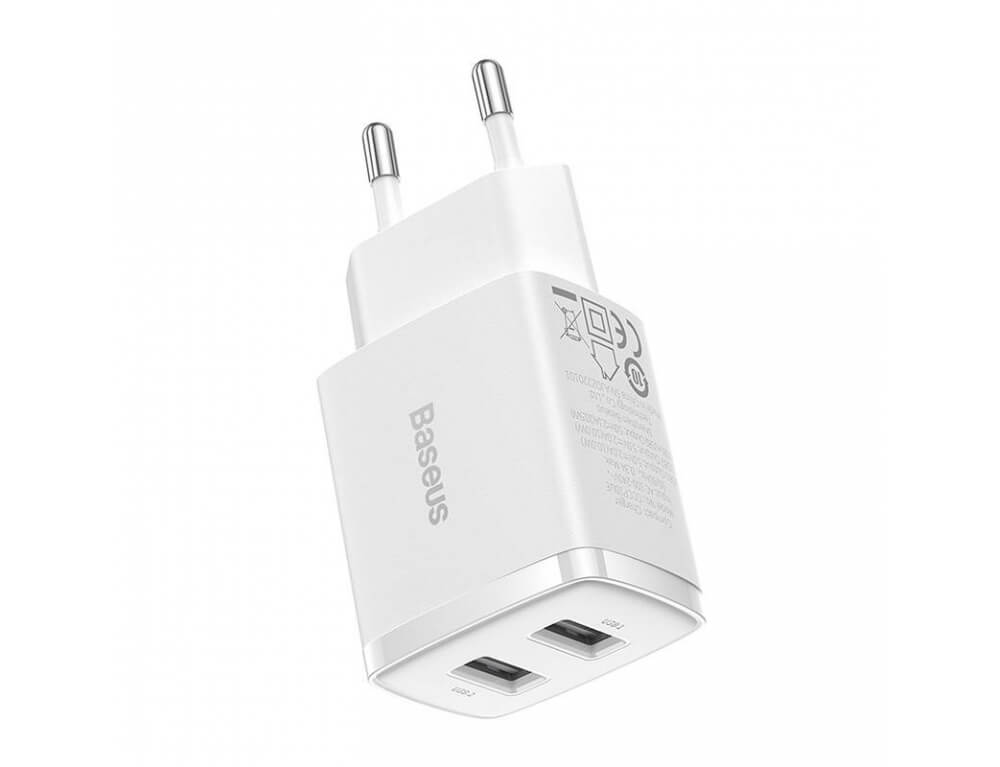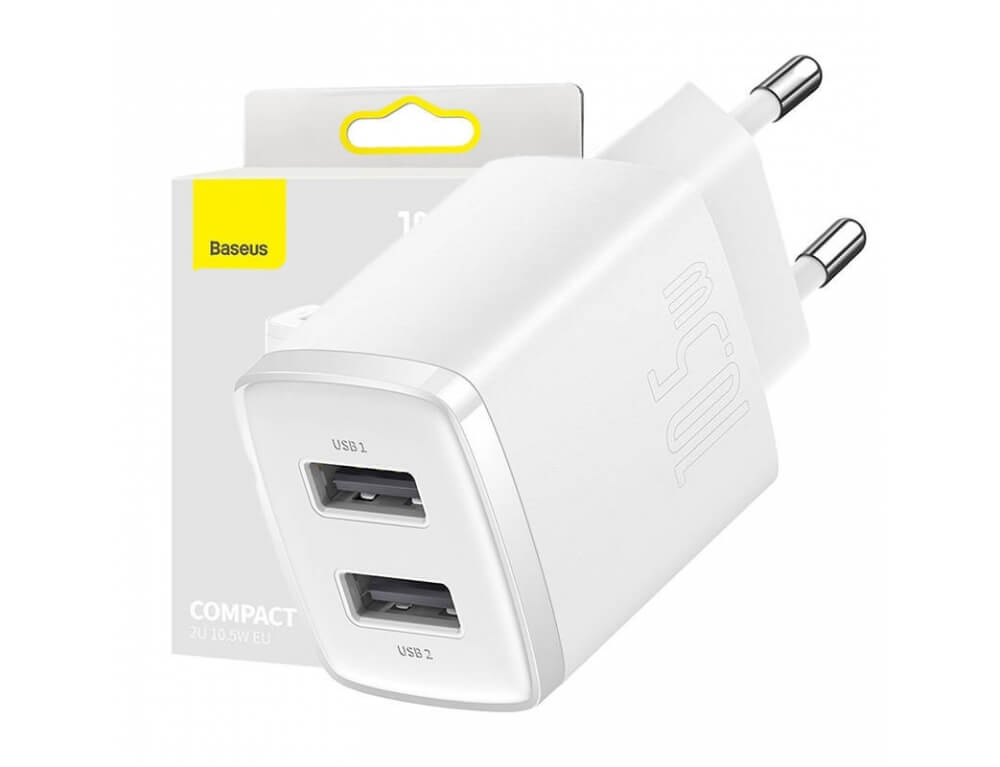 Φορτιστής Baseus Compact Quick Charger - 2x USB - 10.5W - Λευκό