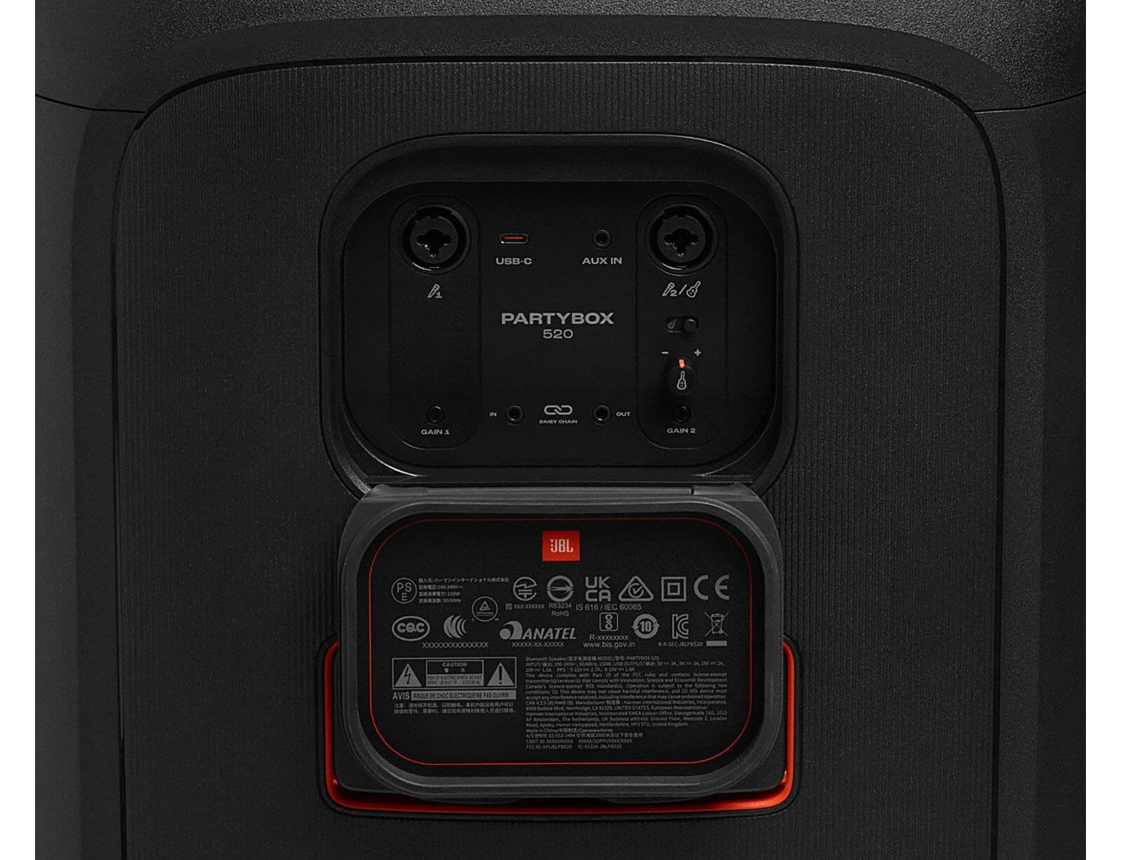 Φορητό Ηχείο JBL Partybox 520 με λειτουργία Karaoke - 400W RMS - Bluetooth, Guitar in, Aux in, USB-C - Black