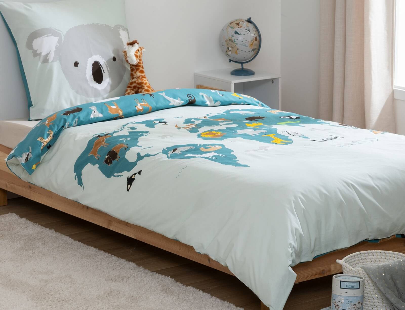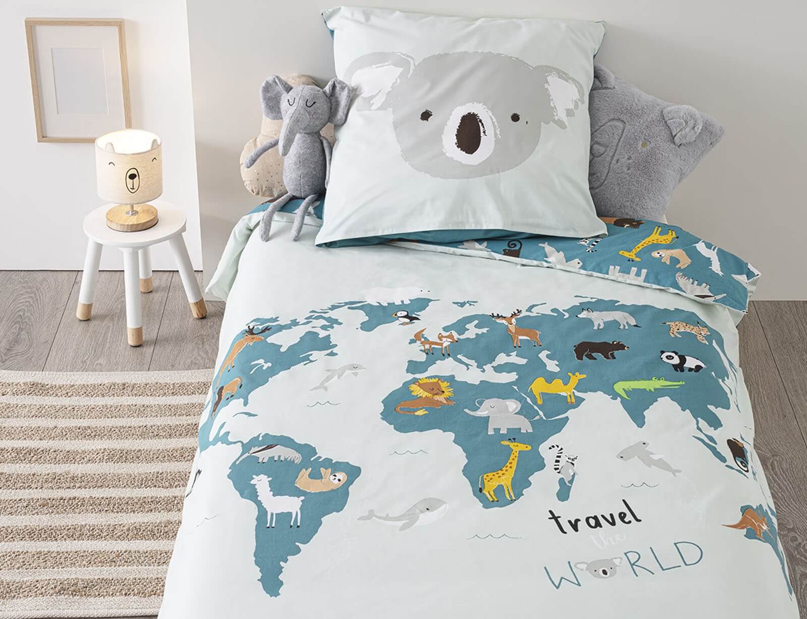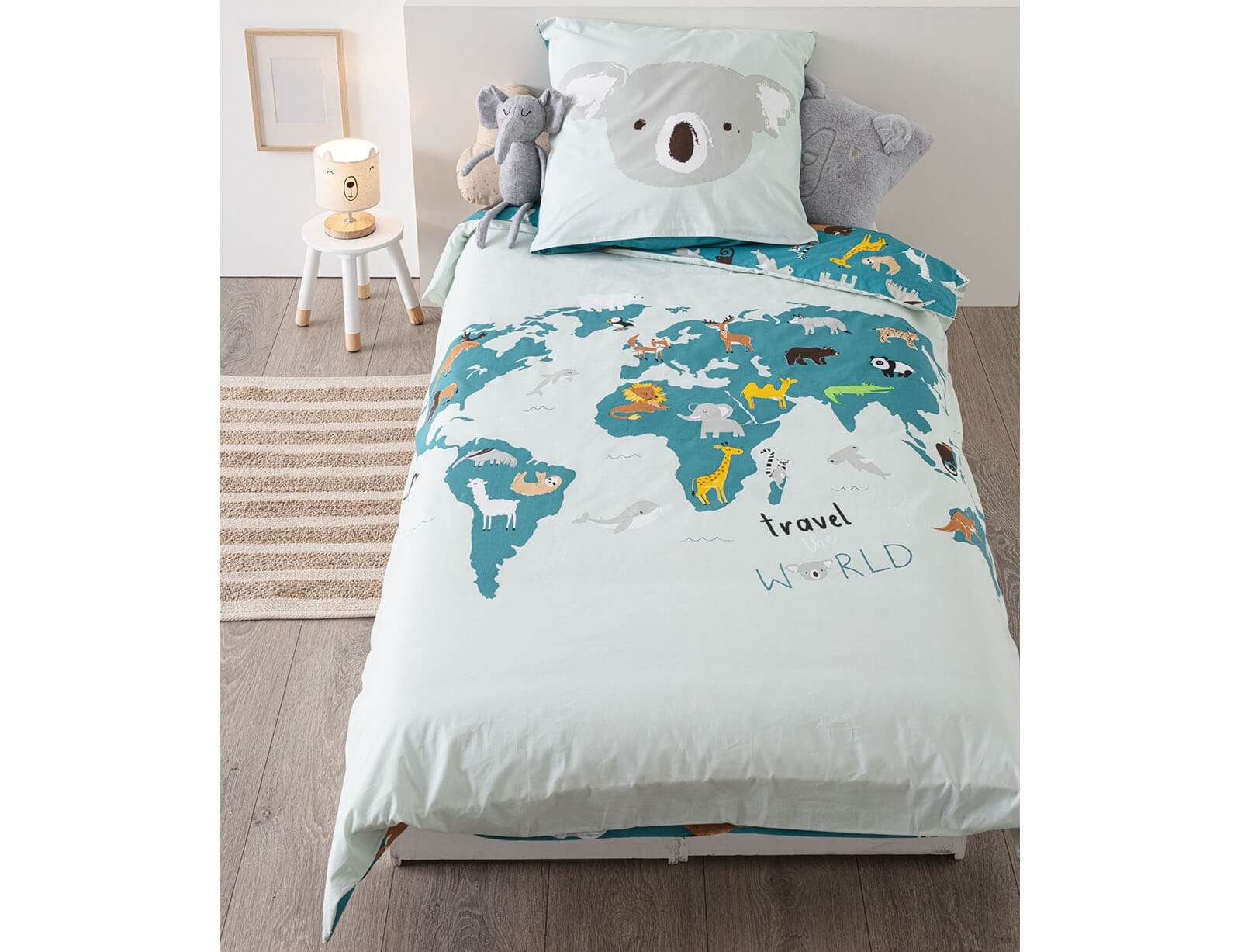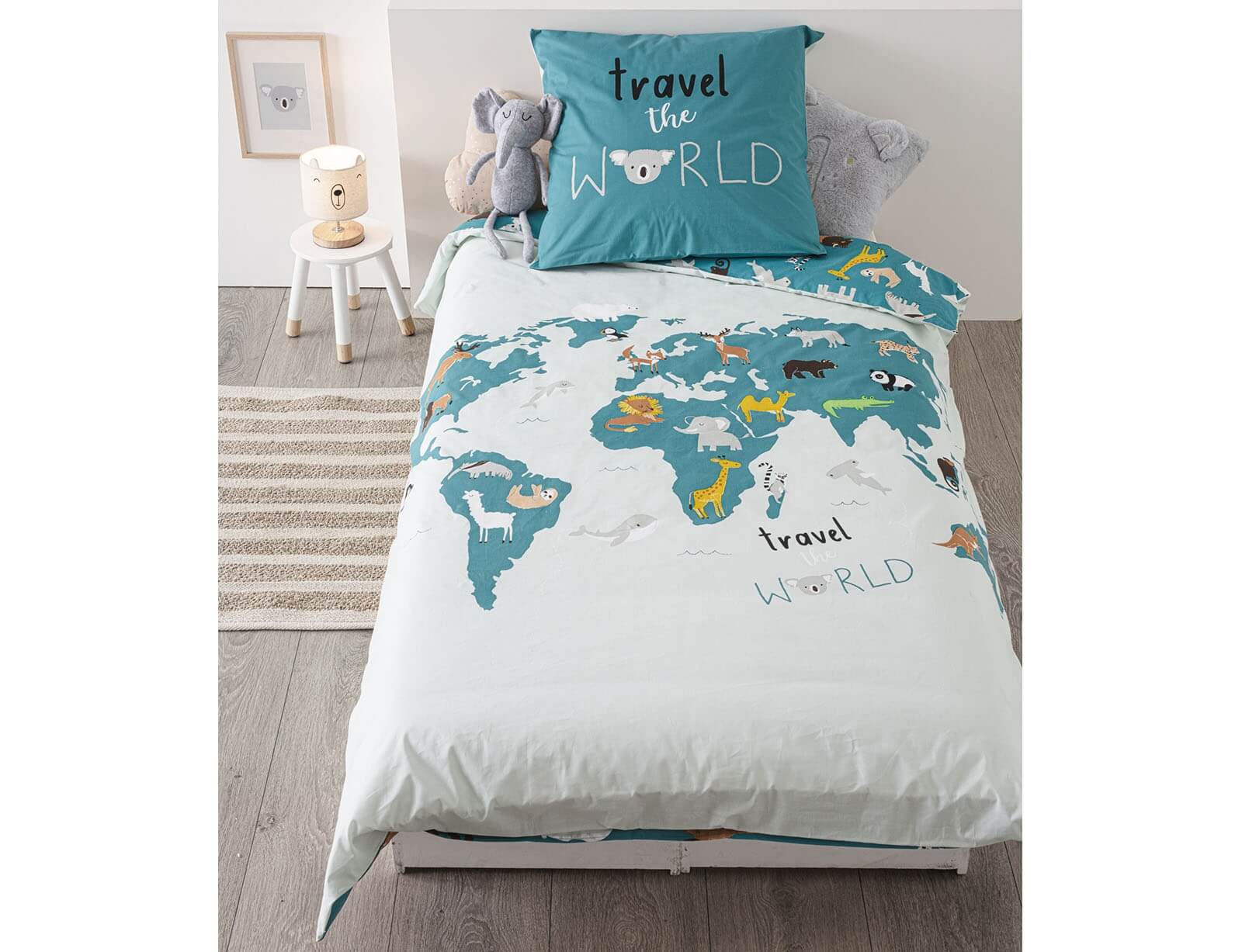 Σετ Μονή Παπλωματοθήκη & Μαξιλαροθήκη World Map Atmosphera 2 όψεων, από βαμβάκι 57TC, με διαστάσεις 140x200cm