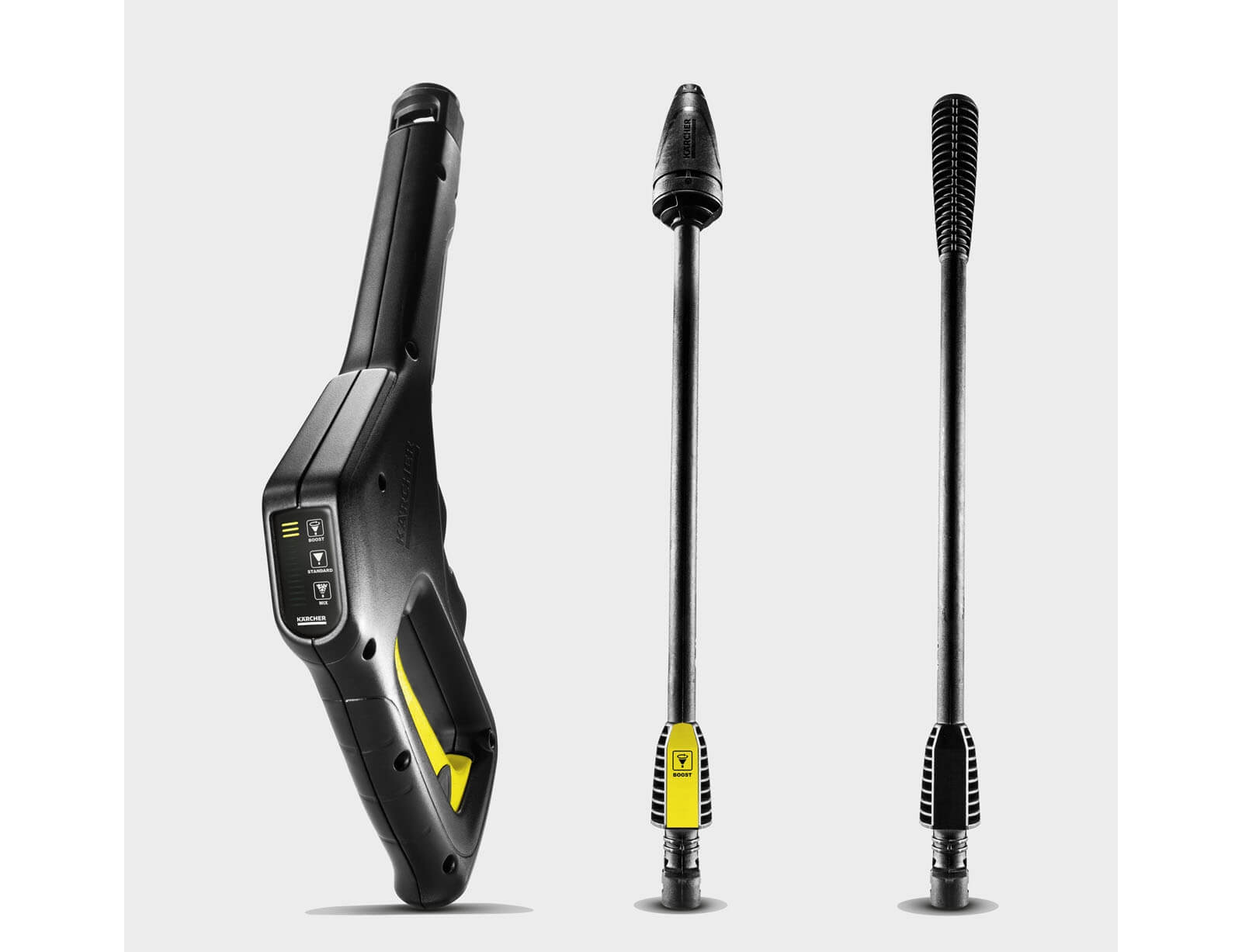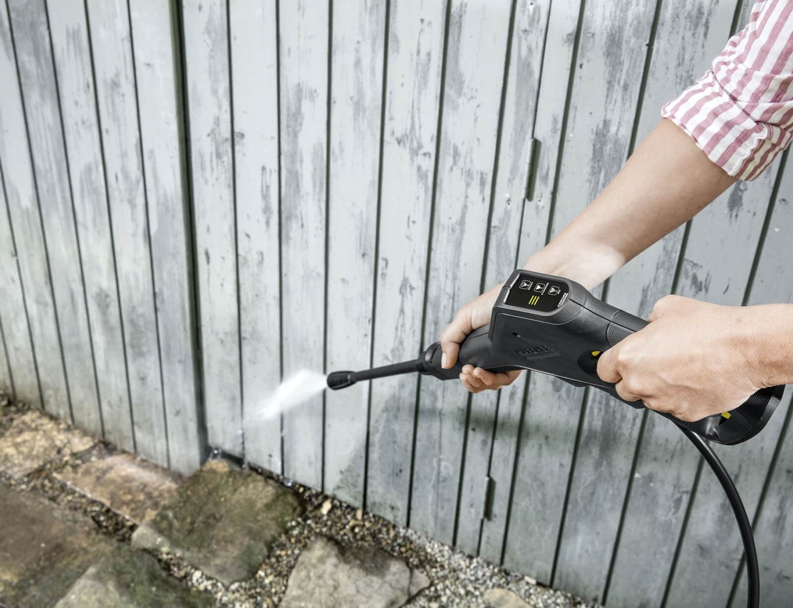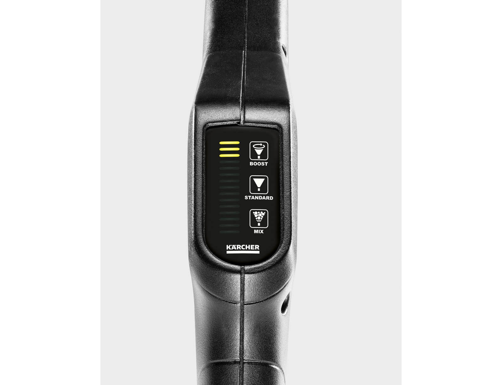 Η σειρά από διαφορετικές κάνες ψεκασμού παρέχει τρία διαφορετικά επίπεδα πίεσης για βέλτιστα αποτελέσματα κατά τον καθαρισμό διαφορετικών επιφανειών. Η οθόνη στο πιστόλι υψηλής πίεσης καθιστά εύκολο τον έλεγχο του επιλεγμένου επιπέδου πίεσης.