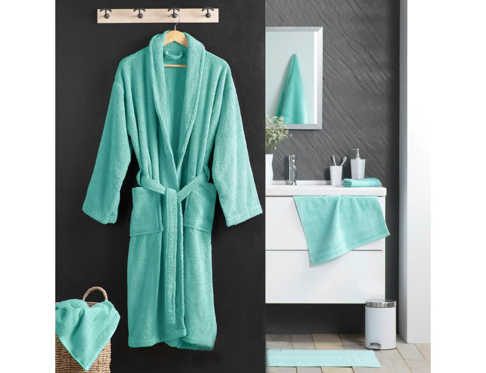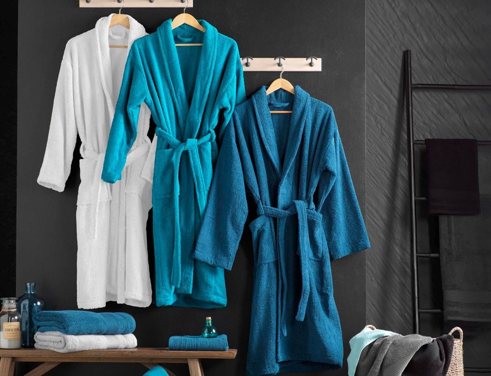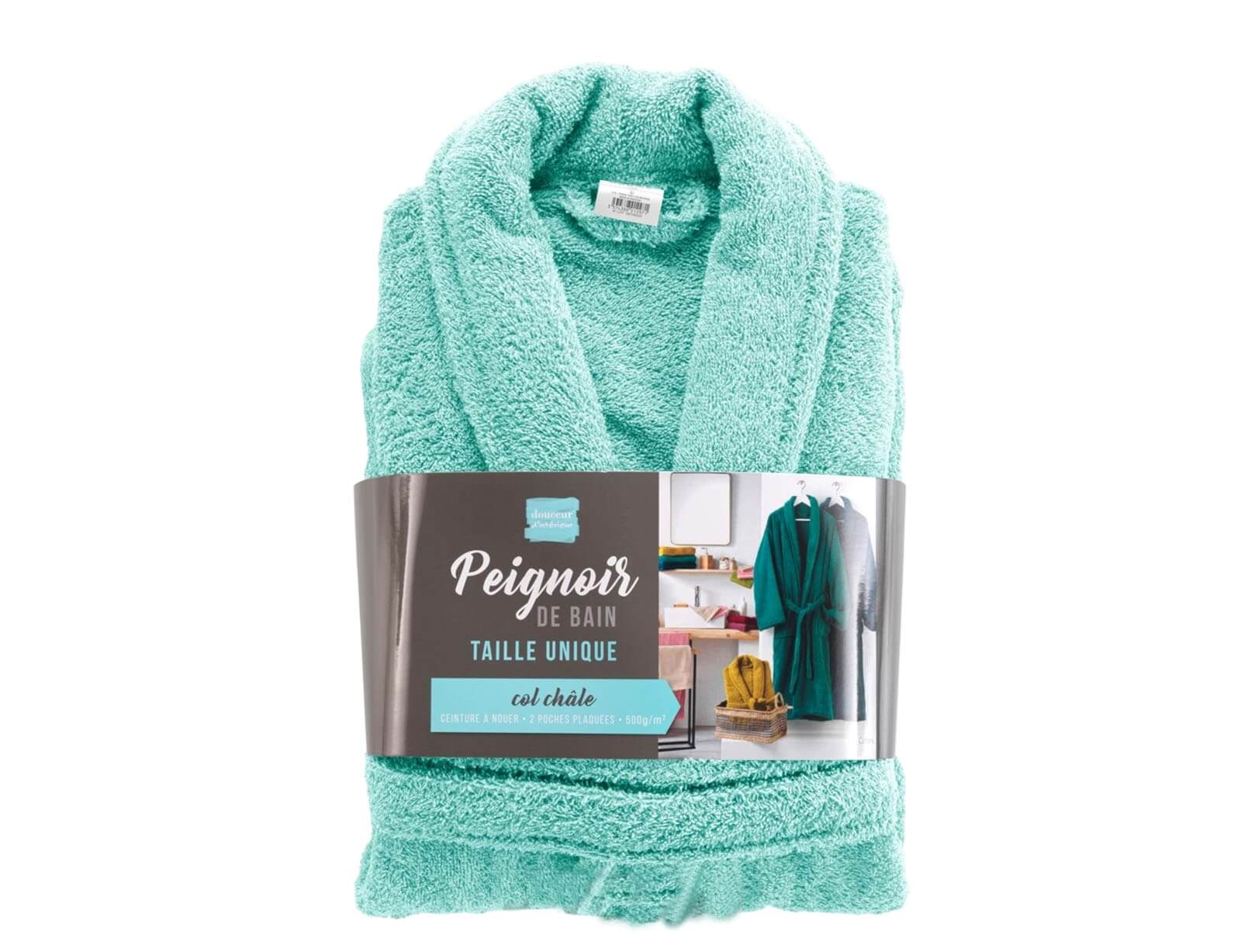 Απολαύστε την αίσθηση της απαλότητας και της πολυτέλειας με το μπουρνούζι από την Douceur d'intérieur σε μπλε απόχρωση. Είναι κατασκευασμένο από 100% βαμβάκι 500 γραμμαρίων ανά τ.μ. που την καθιστά ιδιαίτερα απορροφητική και μαλακή, προσφέροντας ευχάριστη αίσθηση κατά την επαφή με το δέρμα. Μπορεί να πλυθεί στο πλυντήριο στους 40°C. Το Oeko-Tex® label εγγυάται ότι το προϊόν έχει ελεγχθεί και πιστοποιηθεί και δεν περιλαμβάνει επιβλαβείς για την υγεία ουσίες.