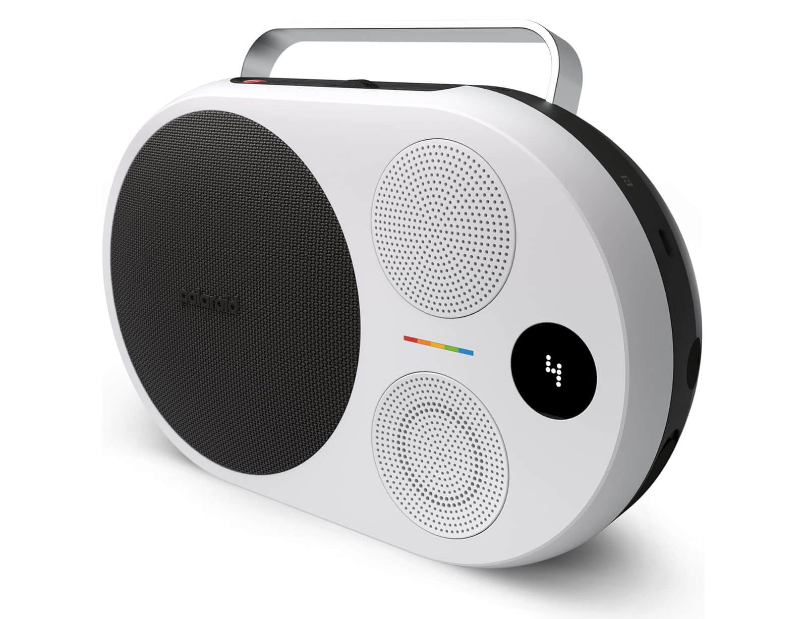 Το Polaroid P4 είναι το πιο ισχυρό φορητό ηχείο της σειράς. Συνδυάζει premium ήχο και εντυπωσιακή σχεδίαση, έτοιμο να τραβήξει όλα τα βλέμματα και να γίνει το κέντρο της παρέας.