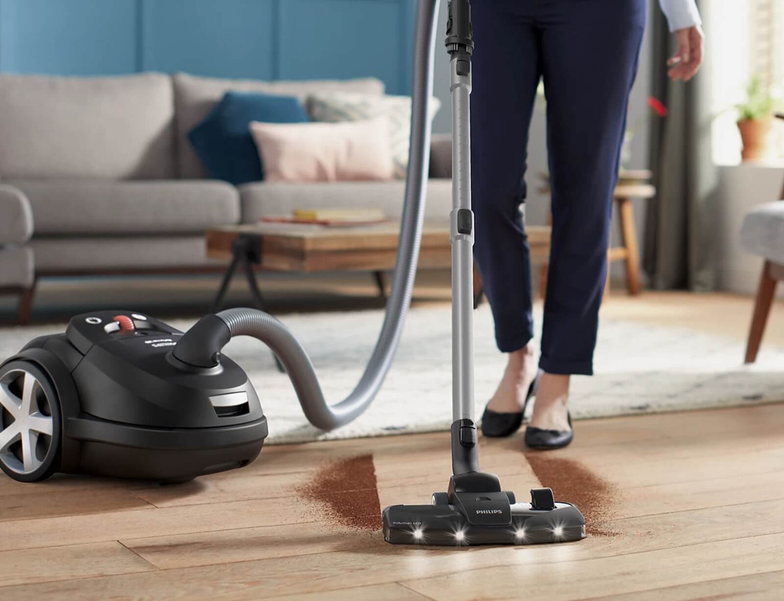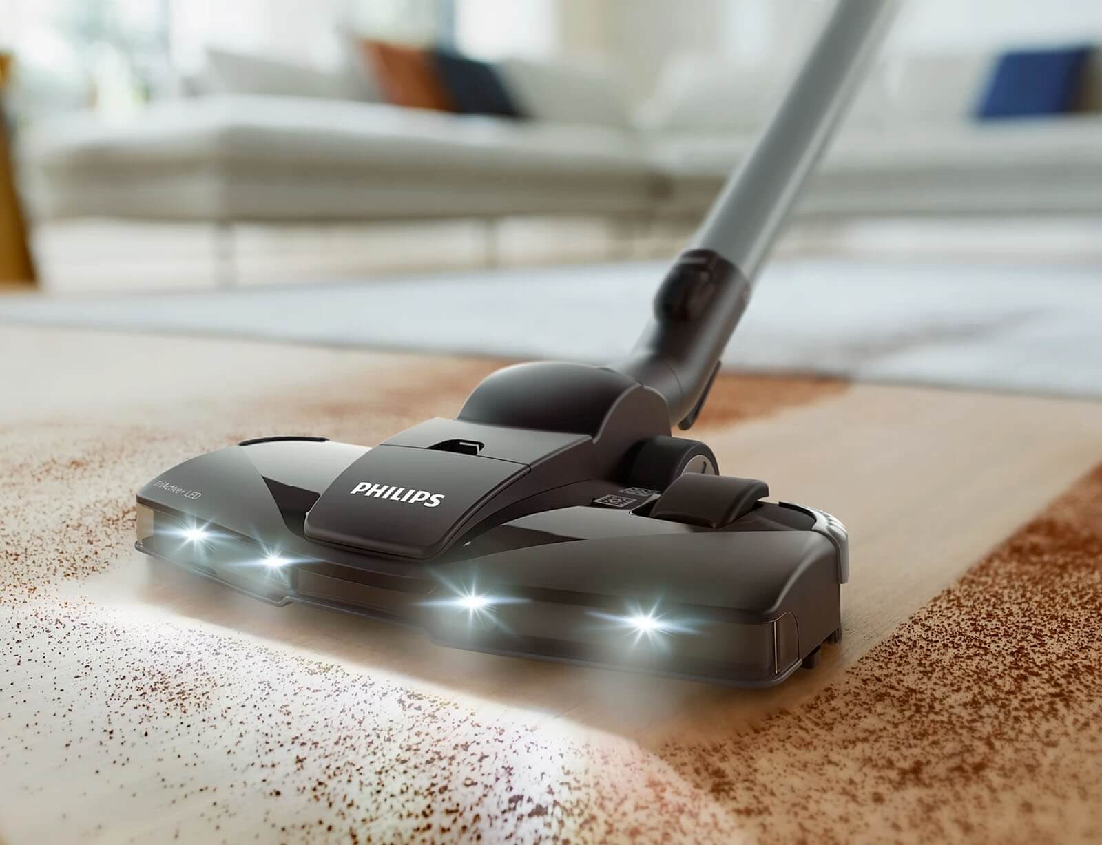 Απολαύστε ανώτερη απόδοση καθαρισμού χάρη στον συνδυασμό της υψηλής απορροφητικής ισχύος και του πέλματος TriActive+LED, που σας επιτρέπει να απομακρύνετε το 99,9% της ψιλής σκόνης.