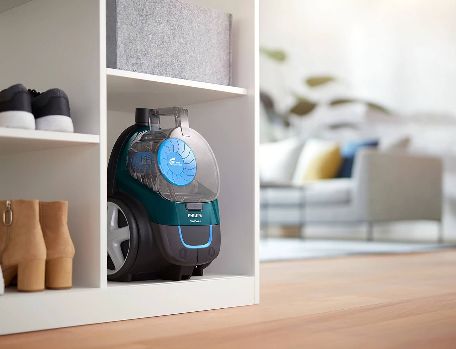 Με την ηλεκτρική σκούπα χωρίς σακούλα, Series 3000 της Philips, το μικρό μέγεθος συναντά τις υψηλές επιδόσεις. Απολαύστε βαθύ καθαρισμό σε όλο το σπίτι χάρη στην τεχνολογία PowerCyclone 5 και το πέλμα μας TriActive που συνδυάζει 3 δράσεις καθαρισμού σε ένα εξάρτημα.