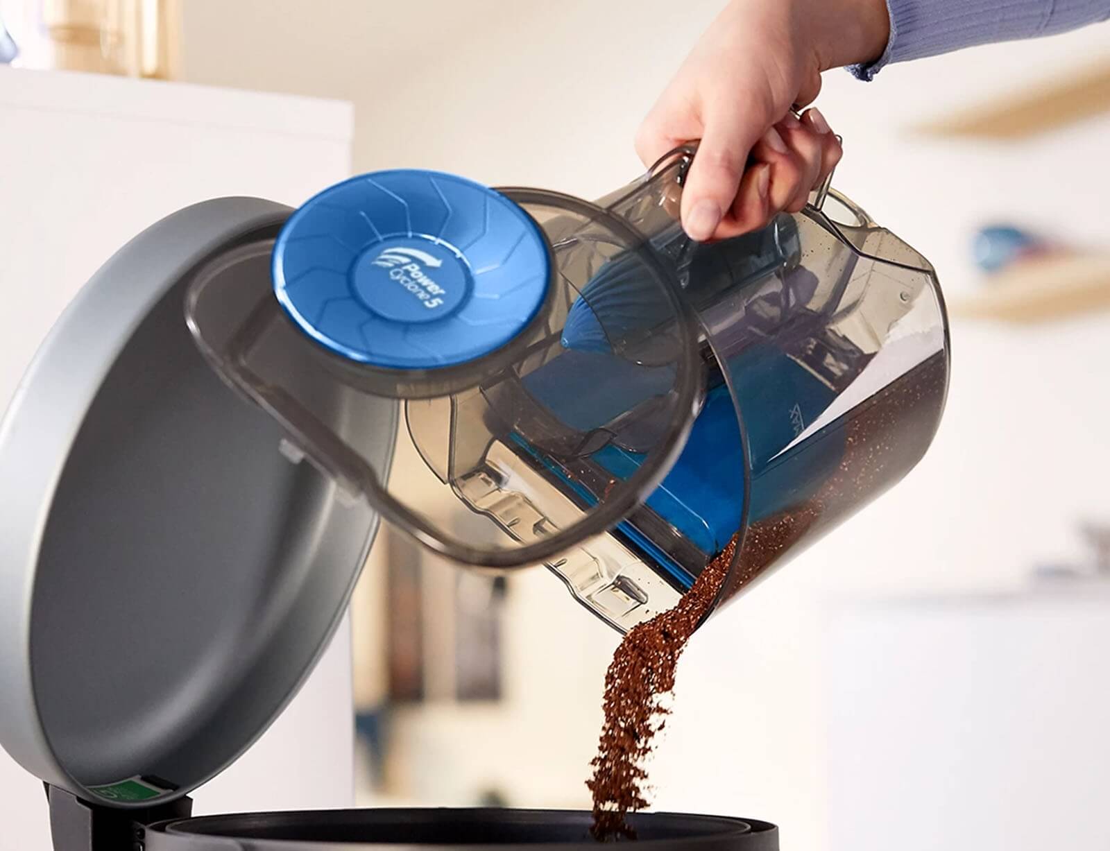 Δοχείο σκόνης σχεδιασμένο για υγιεινό άδειασμα με το ένα χέρι
