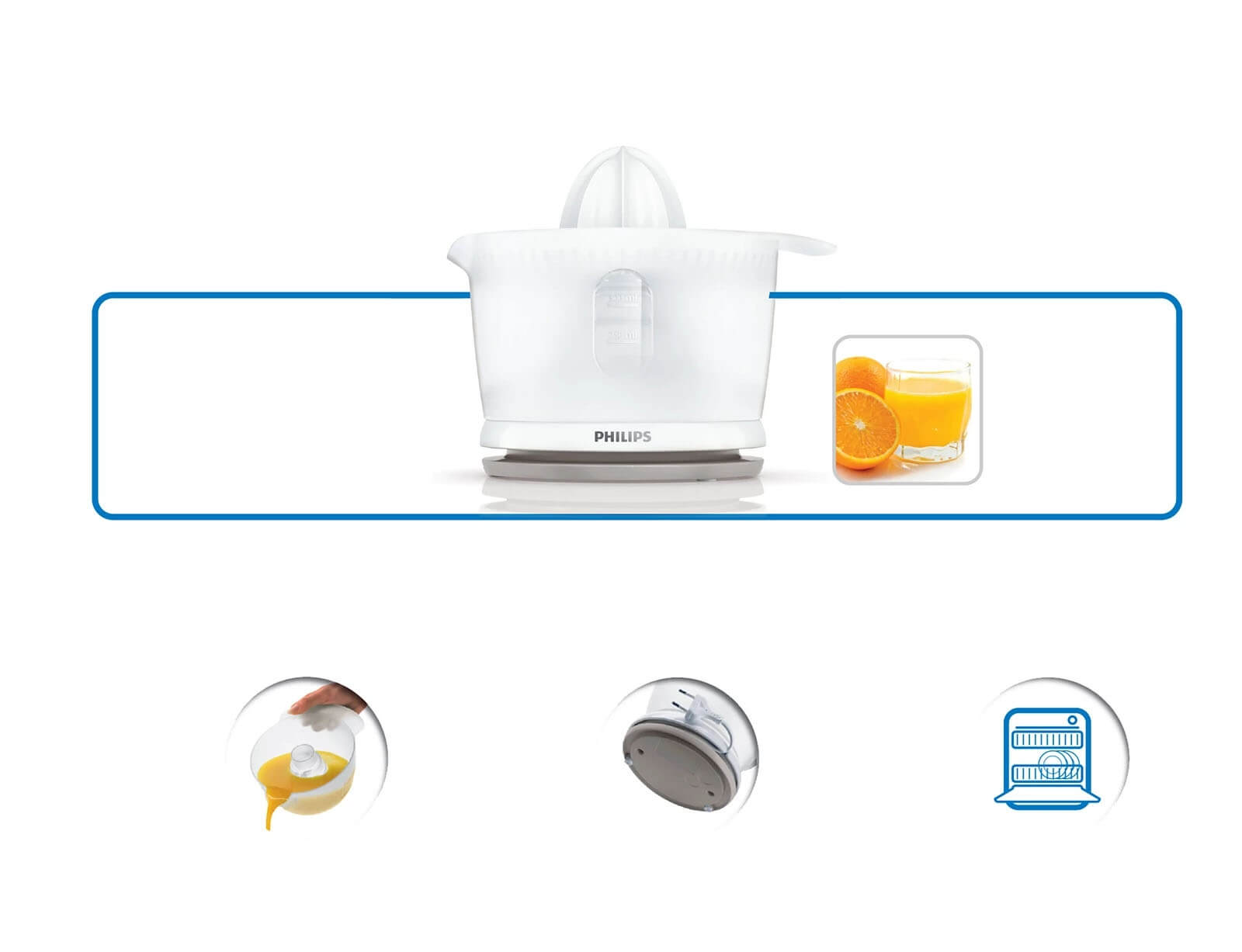 Με το λεμονοστύφτη μπορείτε να προετοιμάσετε εύκολα νόστιμους σπιτικούς χυμούς. Χάρη στο συμπαγή σχεδιασμό του μπορεί να αποθηκευτεί εύκολα, ενώ όλα τα μέρη του πλένονται στο πλυντήριο πιάτων εξοικονομώντας σας χρόνο στο καθάρισμα.