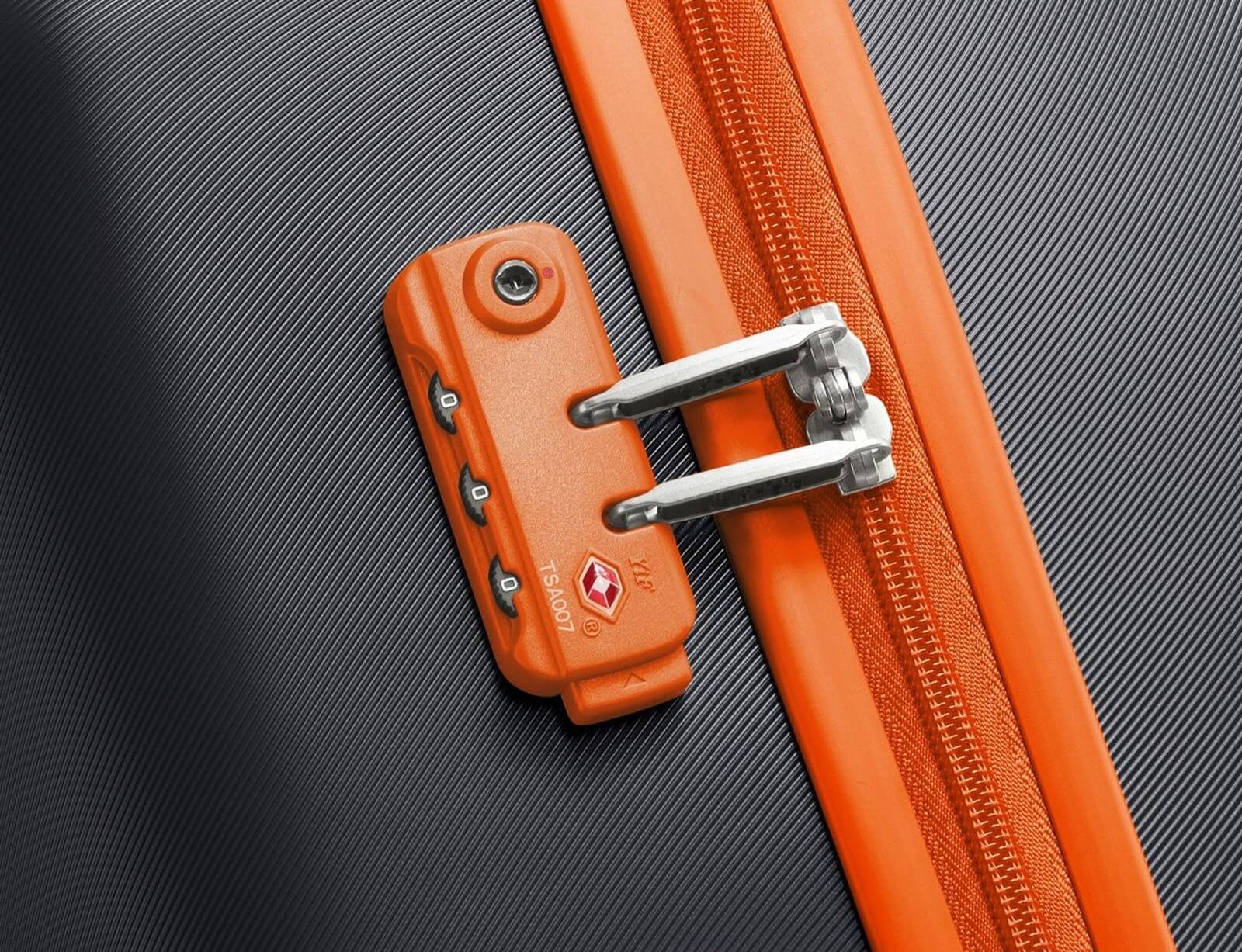 Η βαλίτσα είναι εξοπλισμένη με κλειδαριά TSA με κωδικό, προσφέροντας προσωπική ασφάλεια και παράλληλα επιτρέποντας στις αρχές ελέγχου αποσκευών (TSA) να την ανοίξουν με ειδικό κλειδί, χωρίς να προκληθεί ζημιά.