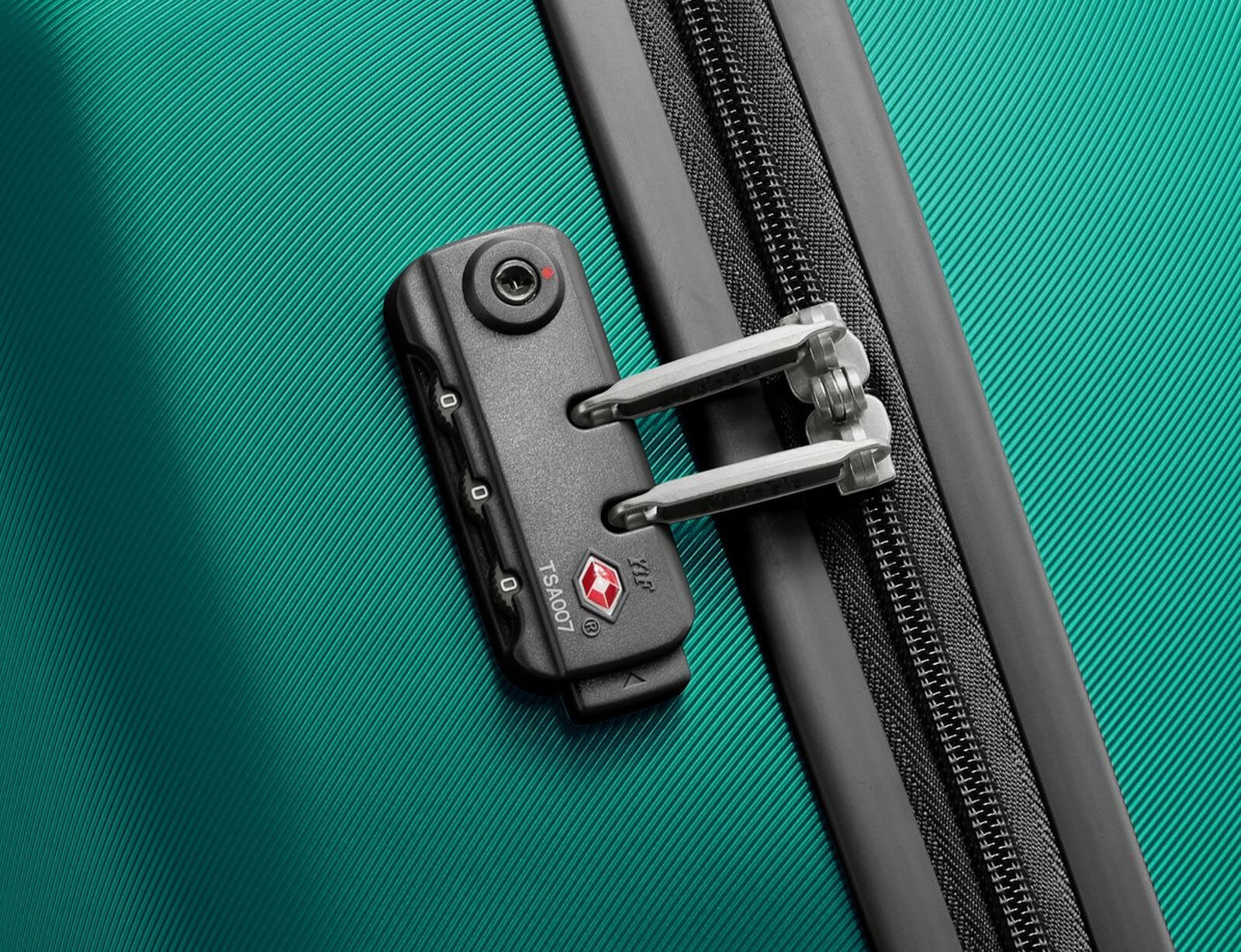 Η βαλίτσα είναι εξοπλισμένη με κλειδαριά TSA με κωδικό, προσφέροντας προσωπική ασφάλεια και παράλληλα επιτρέποντας στις αρχές ελέγχου αποσκευών (TSA) να την ανοίξουν με ειδικό κλειδί, χωρίς να προκληθεί ζημιά.