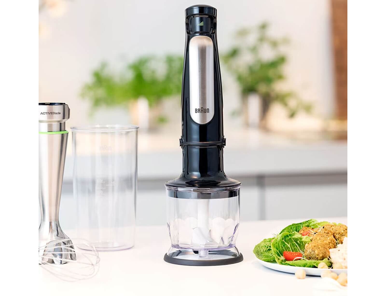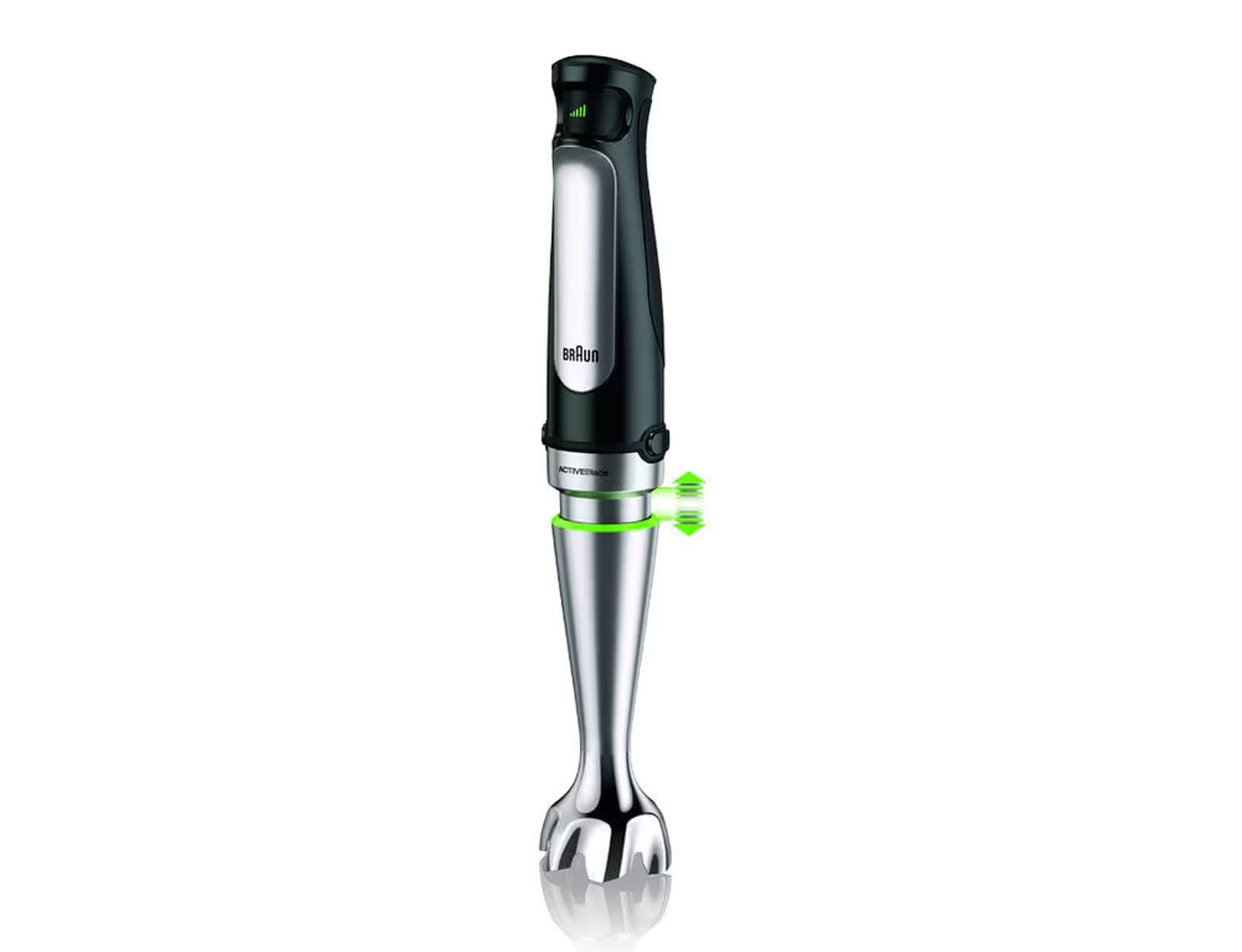 Το νέο ραβδομπλέντερ Braun MultiQuick 7 είναι σχεδιασμένο για να σας βοηθά να ετοιμάζετε υγιεινά γεύματα για την οικογένεια και τους φίλους σας - γρήγορα και εύκολα. Διαθέτει την πρώτη τεχνολογία ACTIVEBlade στον κόσμο. Αυτή η πρωτοποριακή ευέλικτη ράβδος σας προσφέρει 250% περισσότερη επιφάνεια κοπής με την οποία μπορείτε να δουλέψετε* – ένας έξυπνος βοηθός για την κουζίνα σας, ώστε να μπορείτε να κάνετε τη δουλειά σας εύκολα και γρήγορα. Διαθέτει επίσης τη νέα τεχνολογία Easy SmartSpeed της Braun, η οποία σας δίνει τον έλεγχο με ένα μόνο άγγιγμα. Απλώς εφαρμόστε ελαφρή πίεση στο κουμπί ελέγχου για να ρυθμίσετε την ισχύ διαισθητικά και χωρίς διακοπή. *Σε σύγκριση με τα ραβδομπλέντερ Braun με ράβδο που δεν είναι ACTIVEBlade.