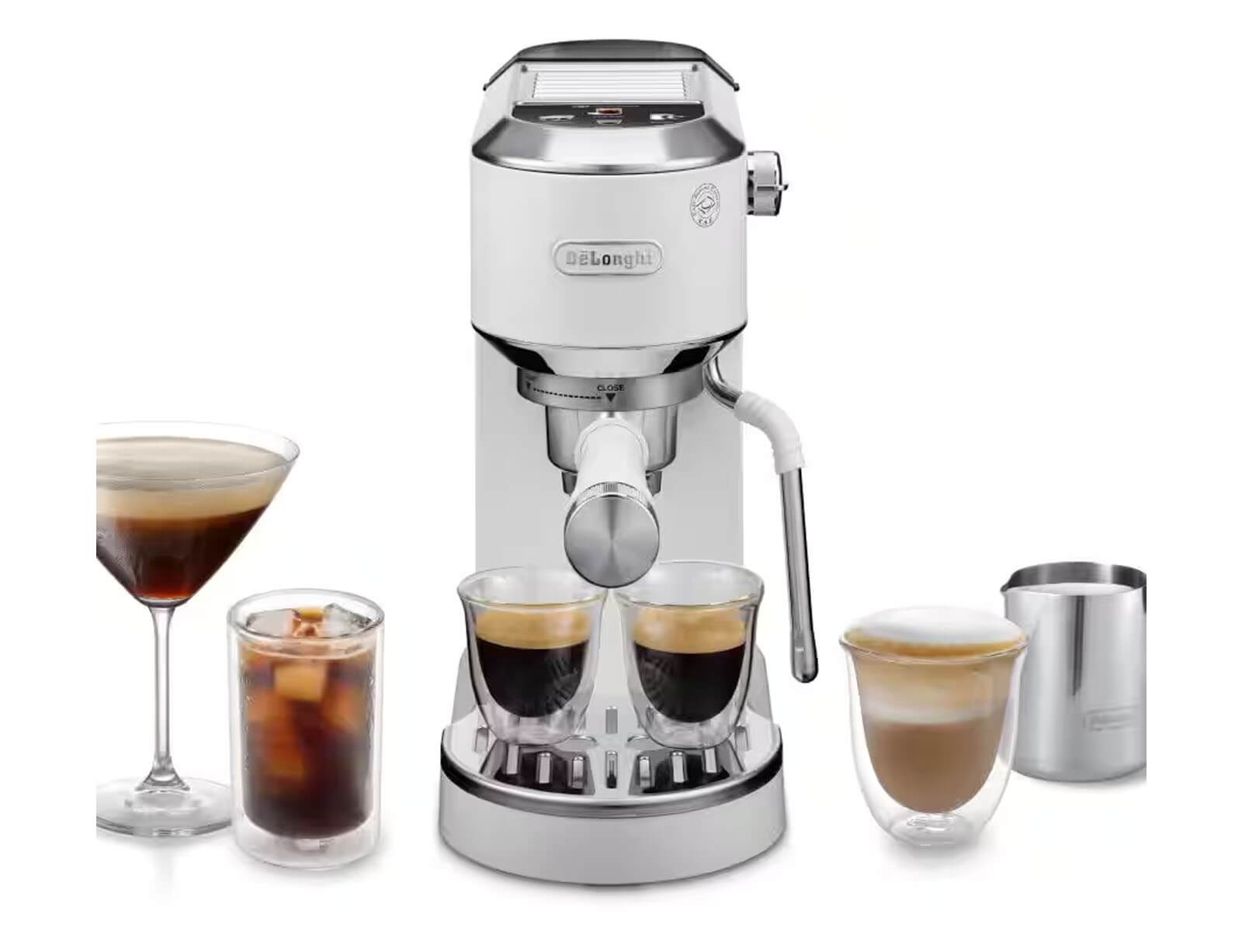 Τελειοποιήστε την τέχνη του espresso, του cappuccino και ακόμα περισσότερων ροφημάτων με βάση τον καφέ και το γάλα στο σπίτι με την Dedica Duo. Απολαύστε ζεστό και κρύο καφέ, συμπεριλαμβανομένης της αποκλειστικής συνταγής Cold Brew και δώστε στα ροφήματά σας μια πινελιά barista με το ακροφύσιο ατμού My LatteArt. Αυτή η συσκευή μικρού μεγέθους ταιριάζει σε κάθε χώρο, προσθέτοντας αβίαστα ιταλικό στιλ στην κουζίνα σας.