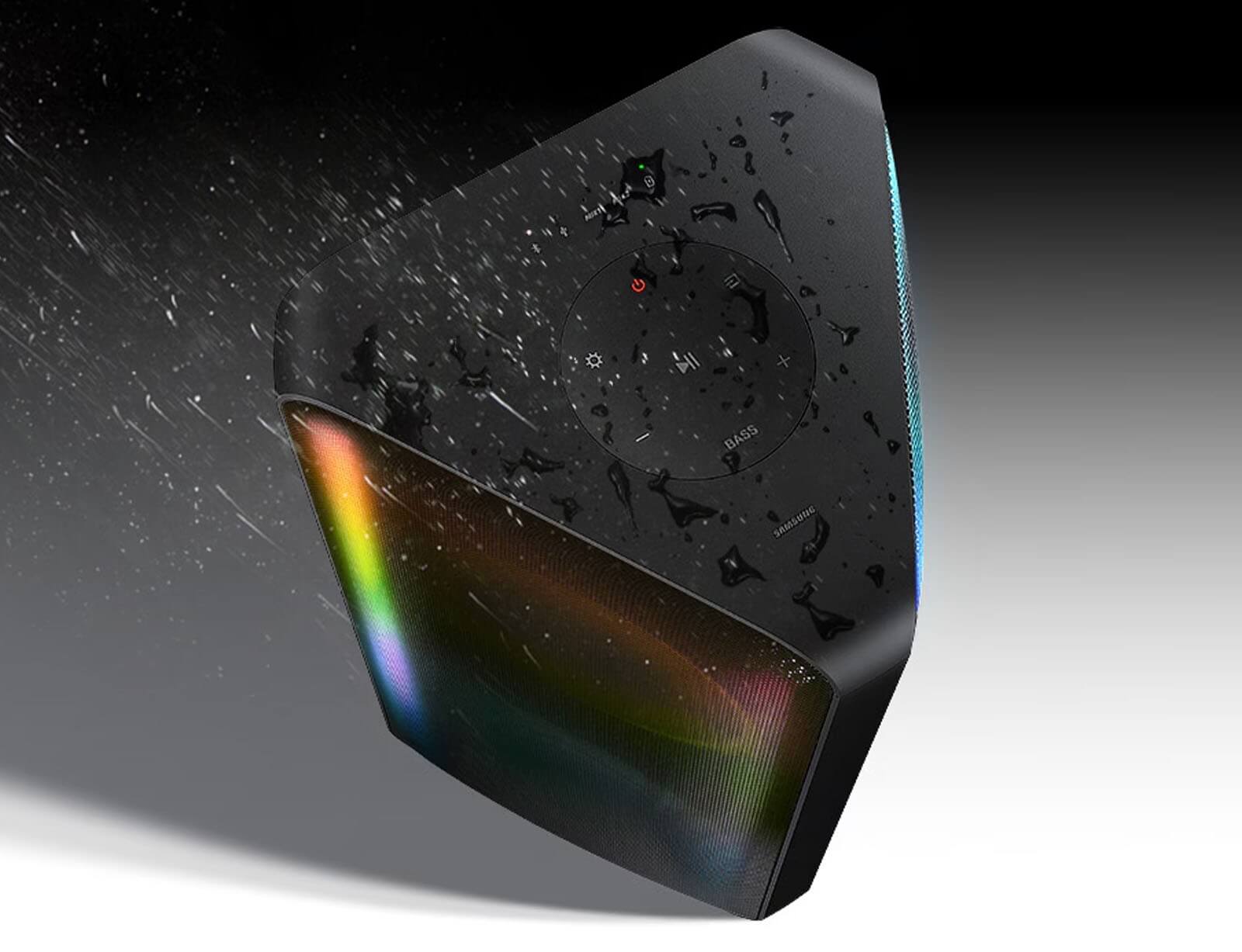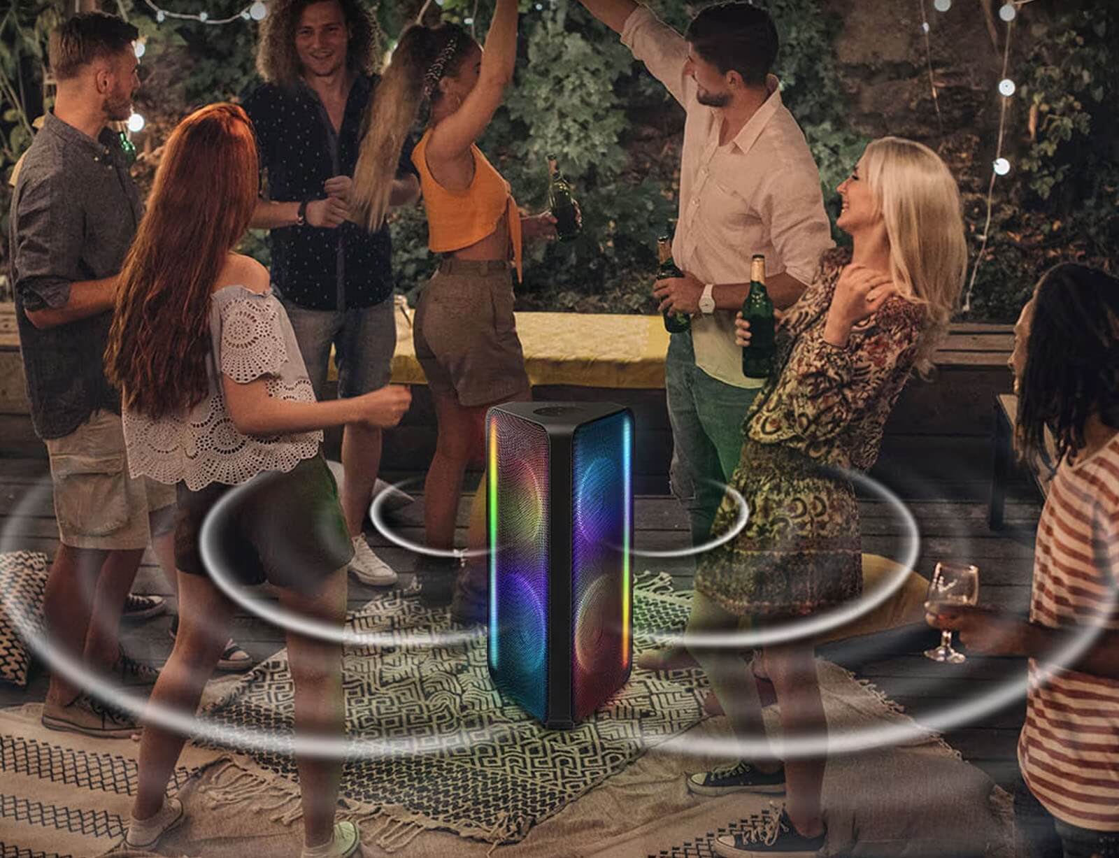 Με πιστοποίηση IPX5, το Sound Tower είναι ανθεκτικό σε διάφορες καιρικές συνθήκες, διαθέτοντας προστασία από το νερό.