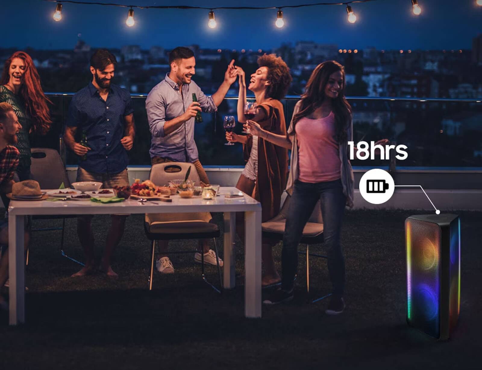 Χάρη στην μπαταρία μακράς διάρκειας που διαρκεί έως και 18 ώρες, μπορείτε να απολαύσετε το πάρτι όπου κι αν βρίσκεστε.