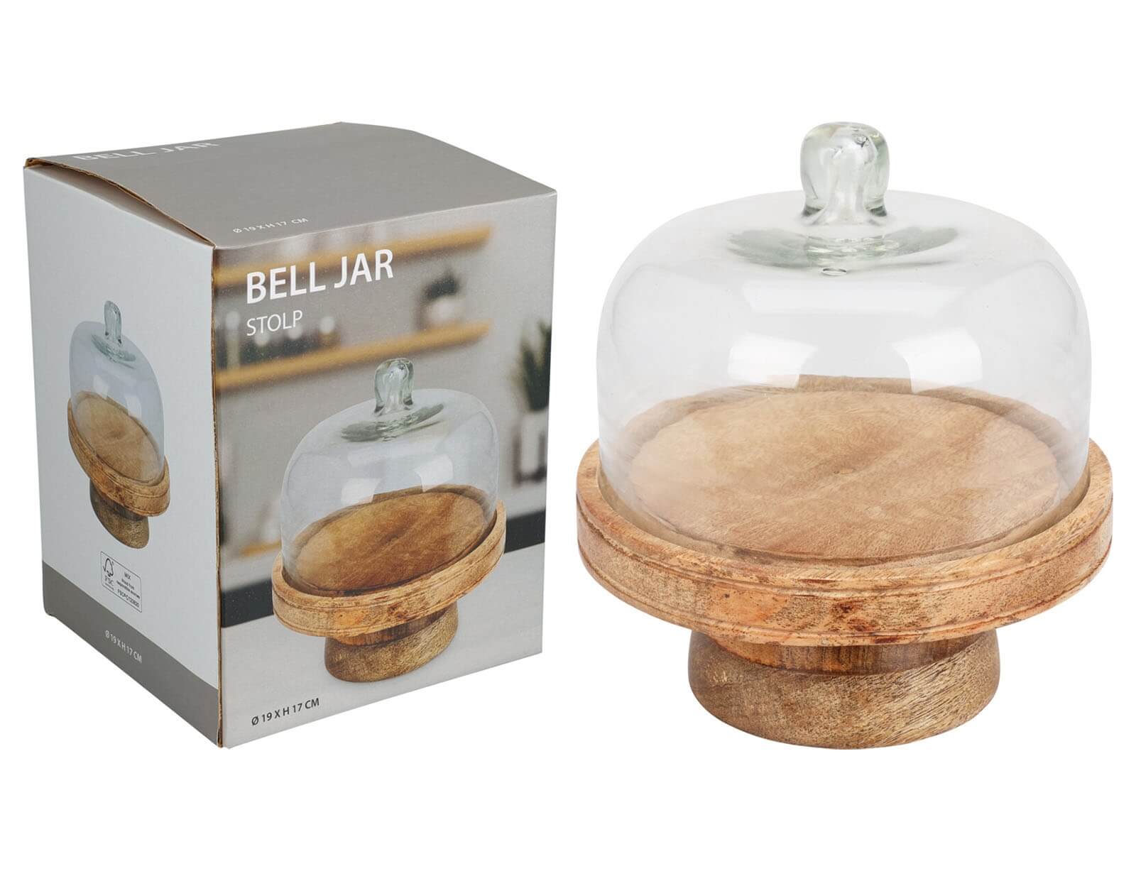 Ξύλινη Τουρτιέρα με γυάλινο καπάκι και διαστάσεις 19x17cm