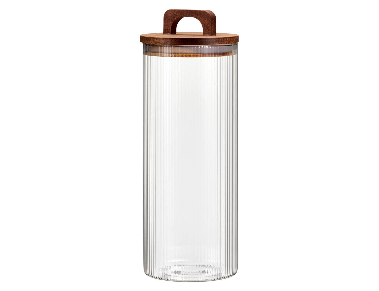 Με το γυάλινο δοχείο τροφίμων μπορείτε να οργανώσετε την κουζίνα σας και να αποθηκεύσετε τρόφιμα ή τα αγαπημένα σας γλυκίσματα. Το καπάκι του είναι κατασκευασμένο από ξύλο και κλείνει αεροστεγώς, με αποτέλεσμα να μην αλλοιώνονται τα τρόφιμα από την υγρασία, τη μούχλα, τη σκόνη και άλλους ρύπους. Επίσης, το φαγητό σας θα παραμείνει πιο φρέσκο με το αρχικό άρωμα για μεγαλύτερο χρονικό διάστημα.