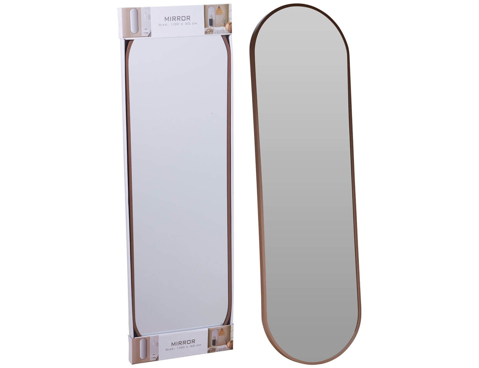 Διακοσμητικός καθρέφτης τοίχου οβάλ, με διαστάσεις 30x2.5x100cm - Dark wood