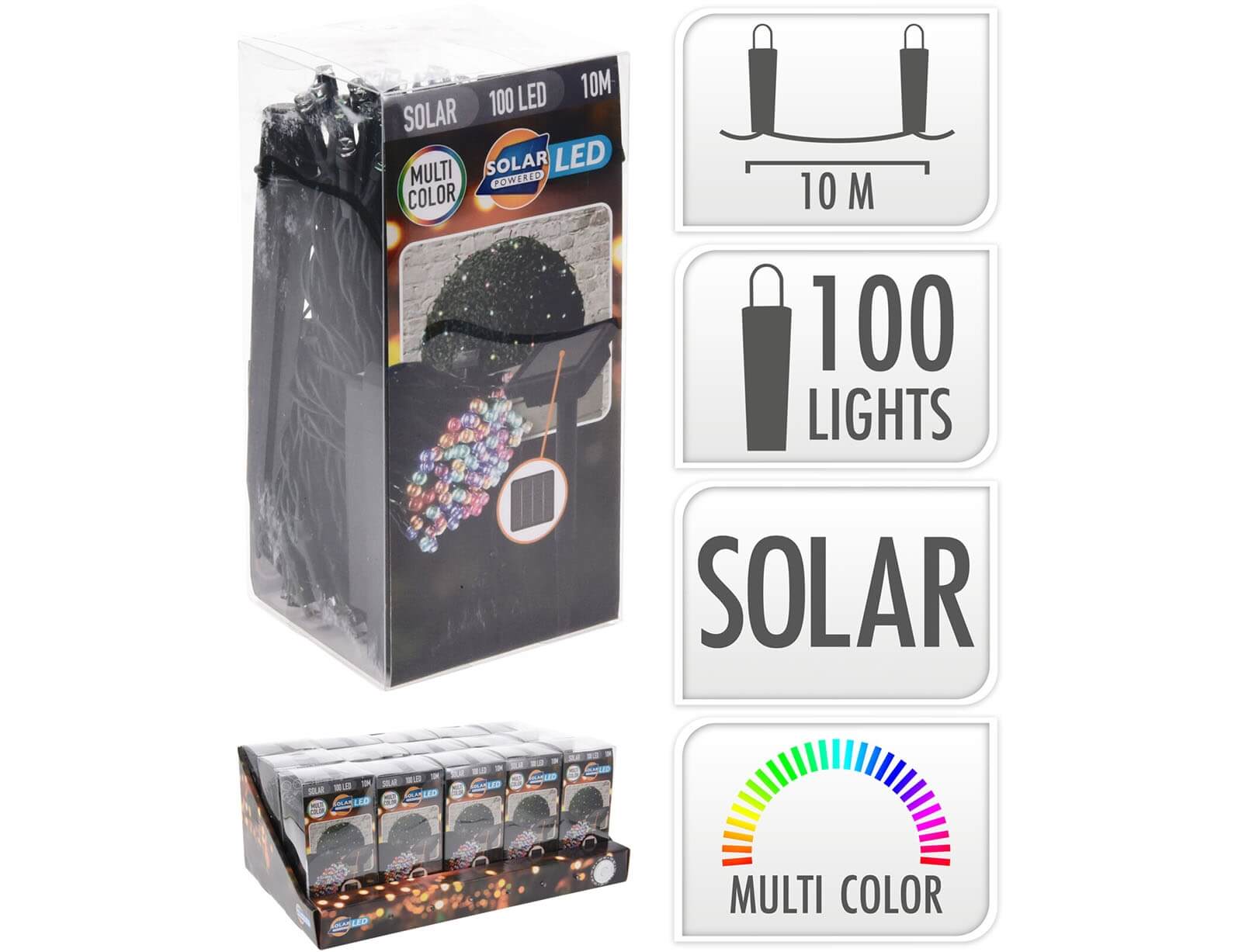 100 Ηλιακά Φωτάκια LED - 10 Μέτρα + 2 Μέτρα σύνδεσης, Κανονική Διάταξη, Πράσινο καλώδιο PVC - Πολύχρωμο