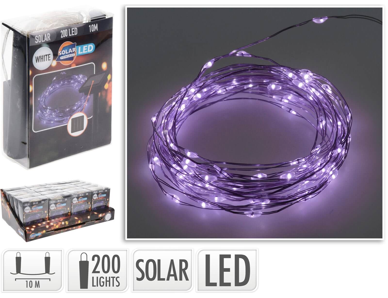 Deco 200 Ηλιακά Φωτάκια MicroLED - 10 Μέτρα + 2 Μέτρα σύνδεσης, Ασημί συρμάτινο καλώδιο - Ψυχρό Λευκό