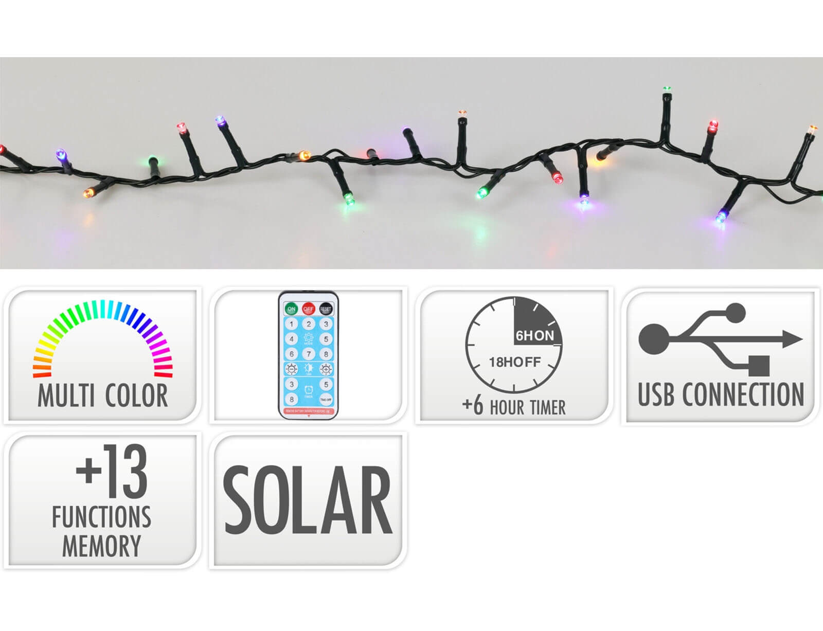768 Ηλιακά Φωτάκια LED - 5.6 Μέτρα + 3 Μέτρα σύνδεσης, με χρονοδιακόπτη, Κανονική Διάταξη, Μαύρο καλώδιο PVC - Πολύχρωμο