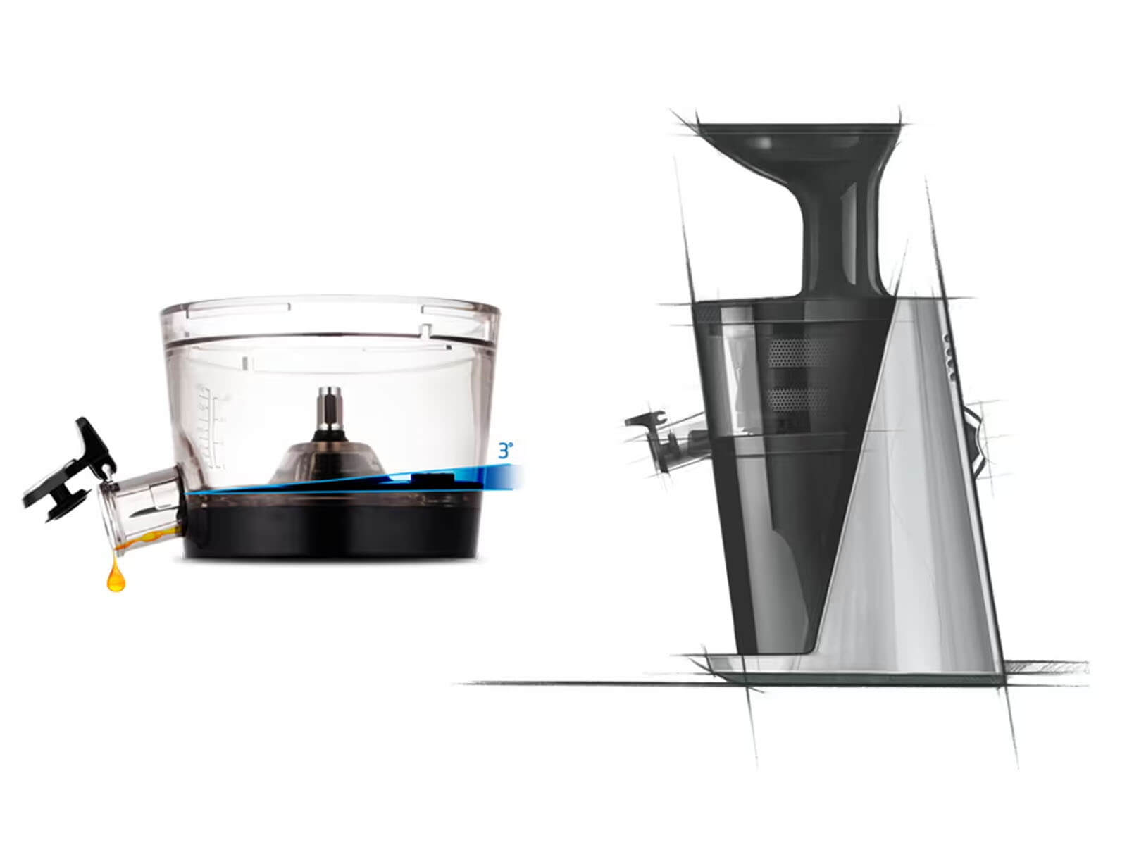Η ομορφιά της διαγώνιας γραμμής, ο σχεδιασμός του κεκλιμένου σώματος κάνουν την κουζίνα σας πιο κομψή. Ο πυθμένας του θαλάμου έχει κλίση 3 μοιρών, έτσι ώστε ακόμη και η τελευταία σταγόνα χυμού να αποβάλλεται χωρίς να γέρνει ο θάλαμος ή το σώμα.
