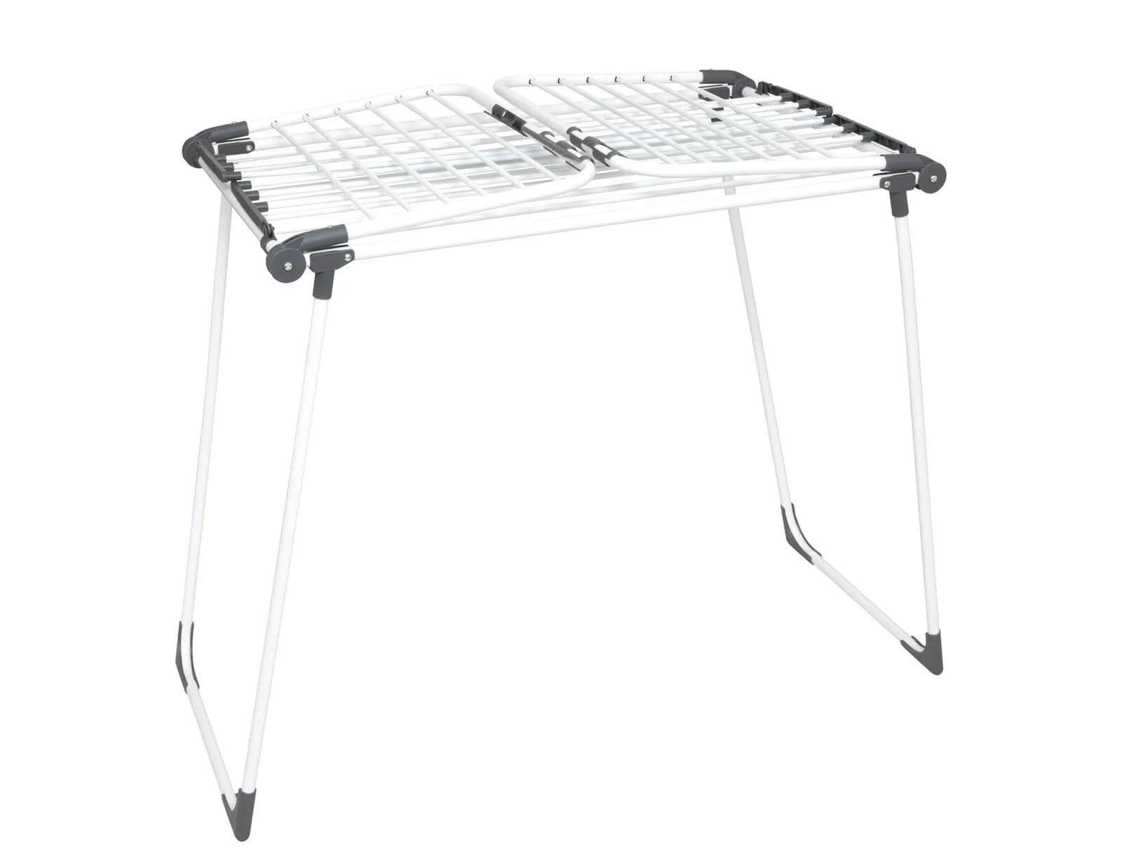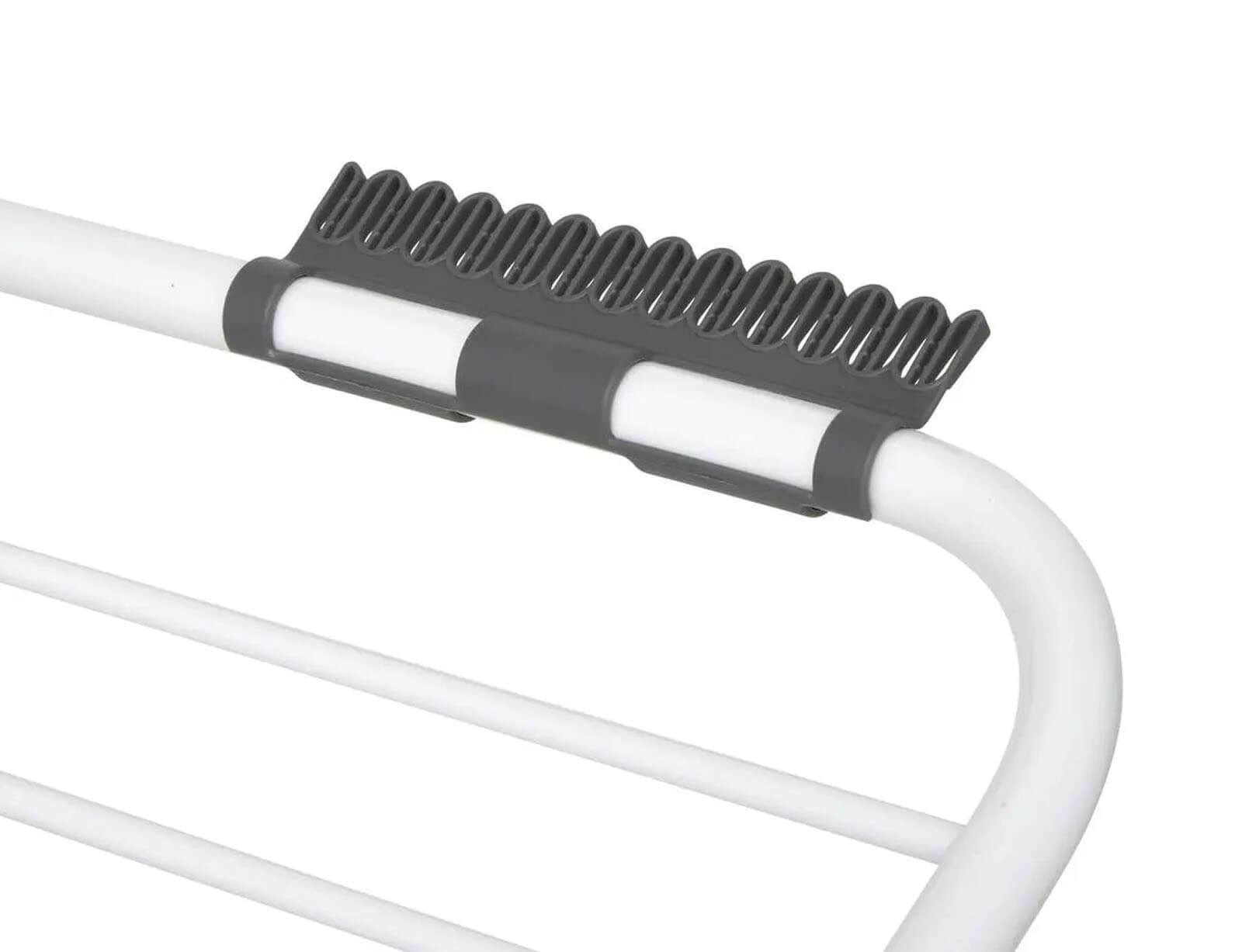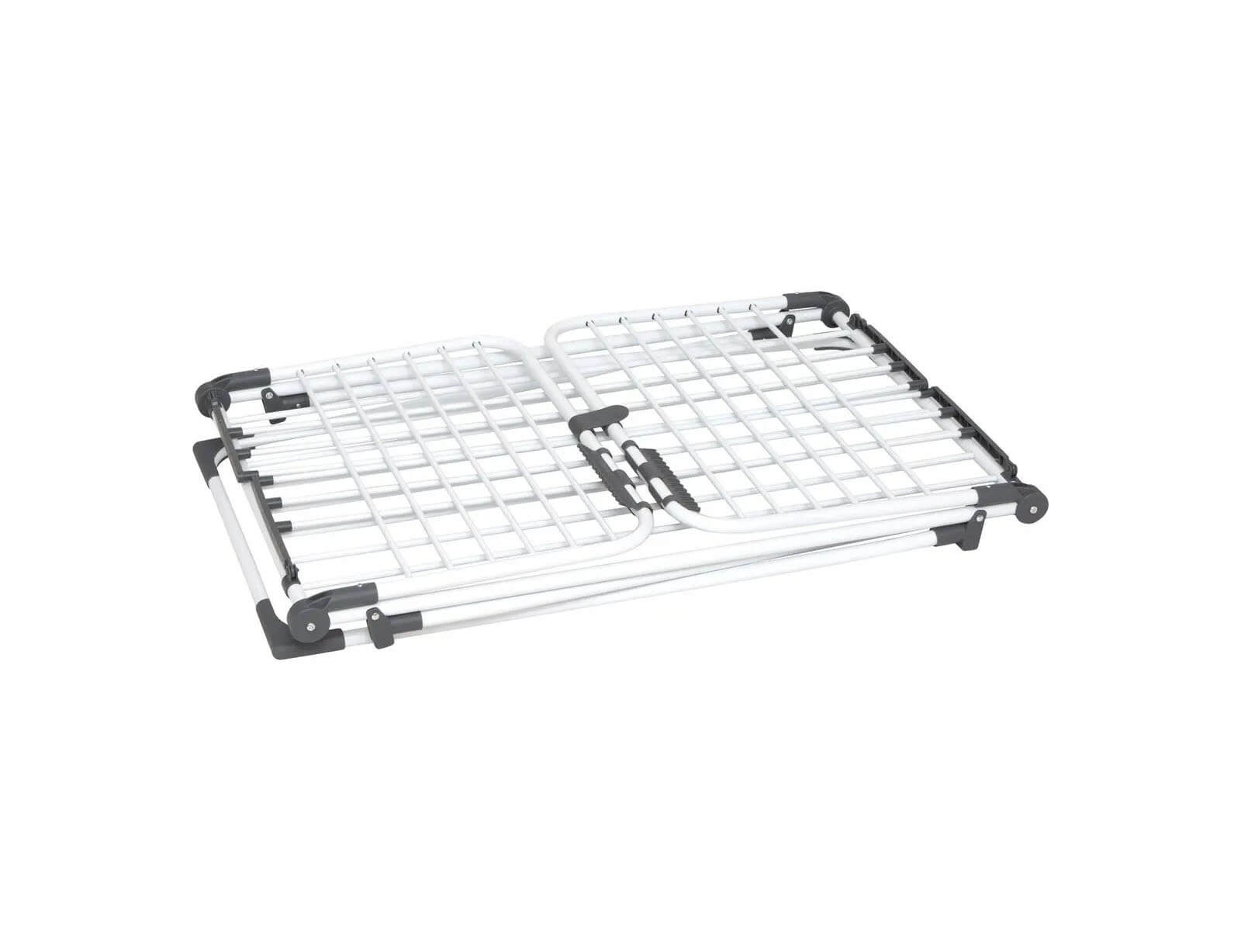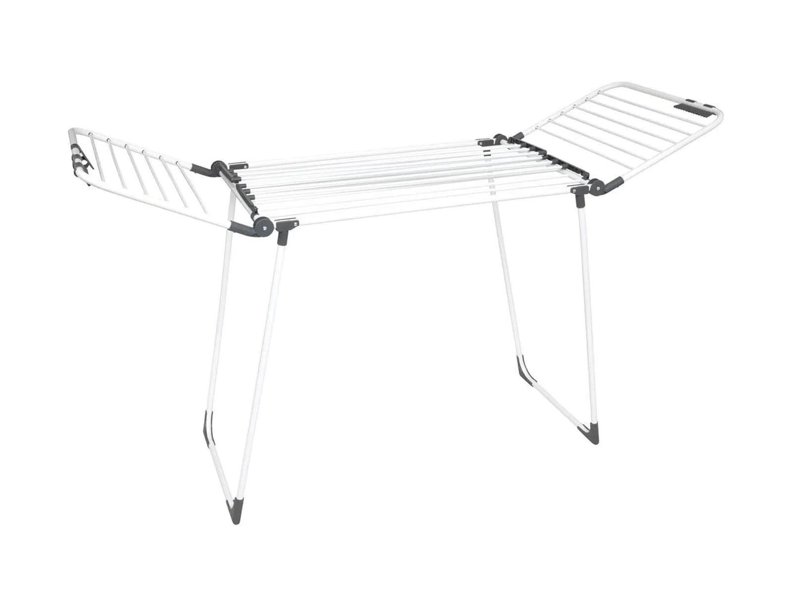 Πτυσσόμενη απλώστρα δαπέδου από την εταιρεία 5five. Με συνολικό μήκος απλώματος 25 μέτρα, χωράει τα ρούχα, τις πετσέτες ή τα σεντόνια σας. Είναι κατασκευασμένη από ανθεκτικό μεταλλικό υλικό σε λευκόχρώμα και διπλώνει ώστε να αποθηκεύεται εύκολα όταν δεν την χρησιμοποιείτε για εξοικονόμηση χώρου. Διαθέτει 2 αποσπώμενα φτερά που επιτρέπουν το άνετο άπλωμα μεγάλων ποσοτήτων ρούχων. Τα φαρδιά σύρματα της σειράς Sinai αποτρέπουν τα σημάδια στο ύφασμα και μειώνουν τον χρόνο στεγνώματος, ενώ τα ενσωματωμένα αξεσουάρ για εσώρουχα προσφέρουν πρακτικότητα στην καθημερινή χρήση.