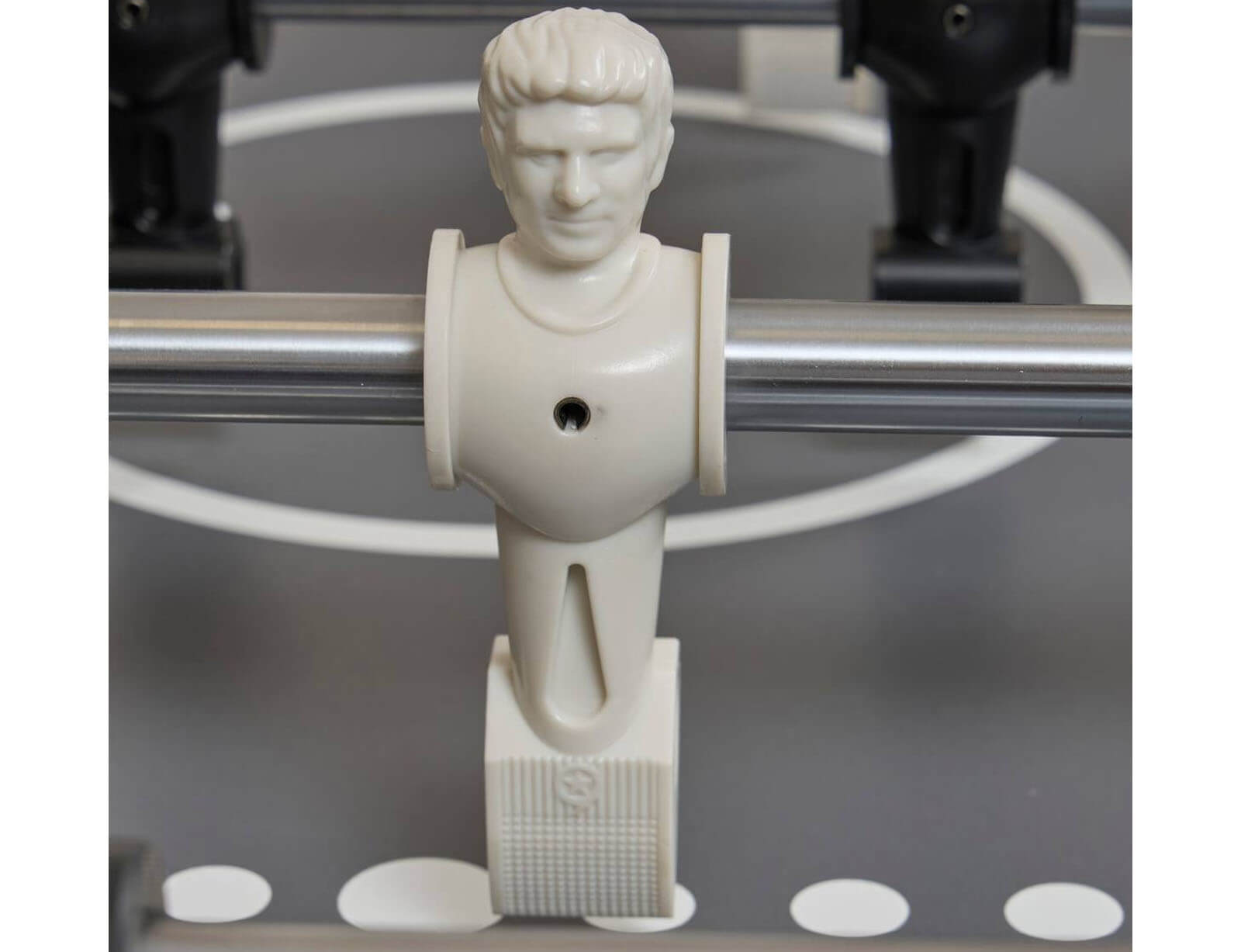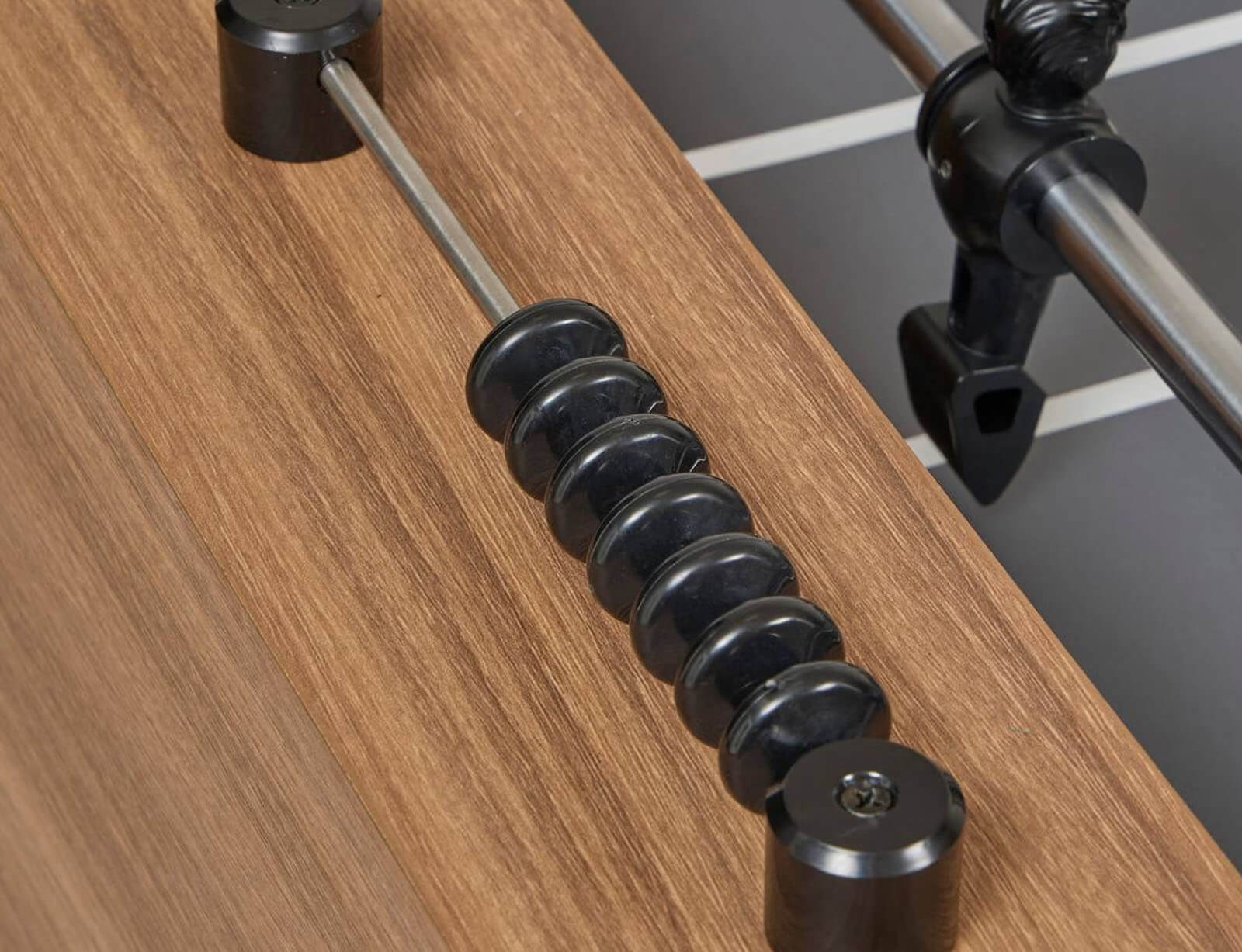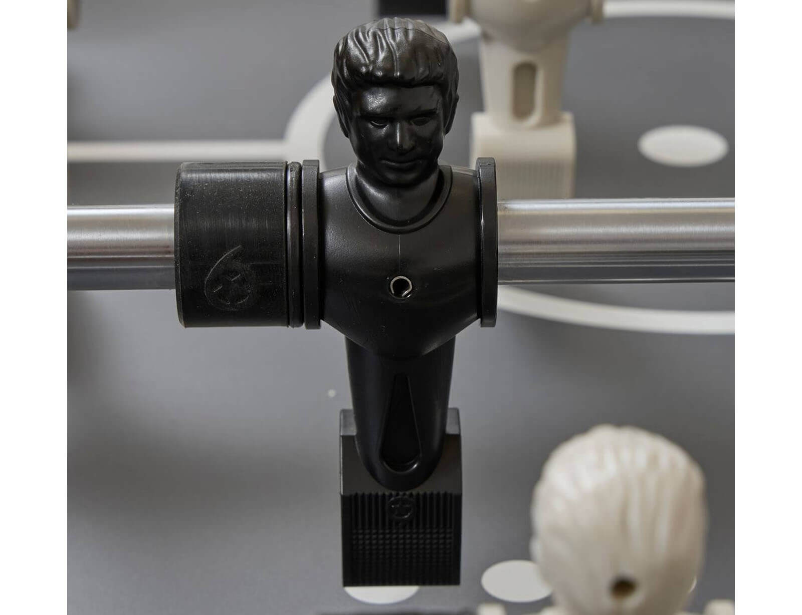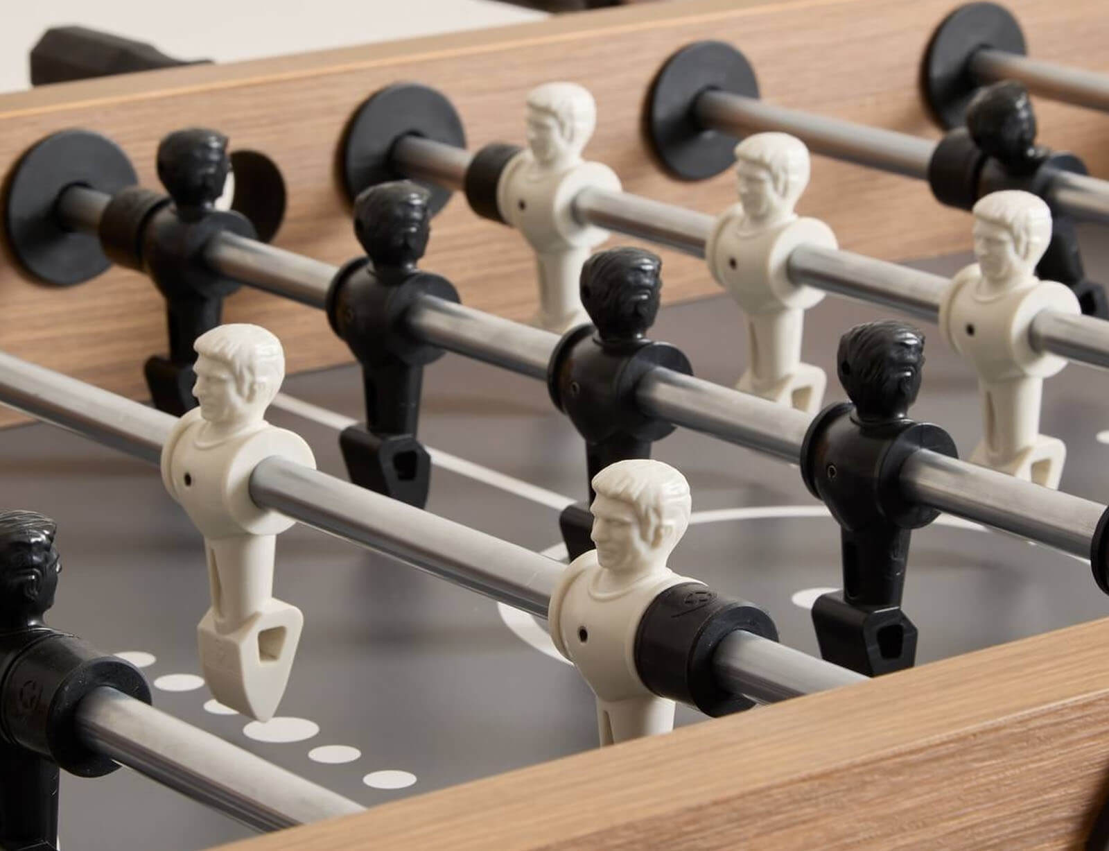 Ζήστε τη δράση και τον ενθουσιασμό του ποδοσφαίρου μέσα στο σπίτι σας! Το τραπέζι ποδοσφαίρου Willy Atmosphera αποτελεί μία κομψή επιλογή για κάθε χώρο, χάρη στον προσεγμένο σχεδιασμό του και τις ισορροπημένες αναλογίες του. Ο μινιμαλιστικός σχεδιασμός του εμπλουτίζεται με γραφιστικά στοιχεία σε φινίρισμα ορείχαλκου, ενώ το στιβαρό του σώμα εξασφαλίζει σταθερότητα ακόμα και στις πιο έντονες αναμετρήσεις. Οι φιγούρες είναι φτιαγμένες από ανθεκτική ρητίνη και διατίθενται σε δύο λιτές αποχρώσεις, χαρίζοντας μοντέρνα εμφάνιση. Οι χαλύβδινες βέργες διαθέτουν αντιολισθητικές λαβές, που προσφέρουν άνετο και σταθερό κράτημα για μεγαλύτερη ακρίβεια και απόλαυση στο παιχνίδι.