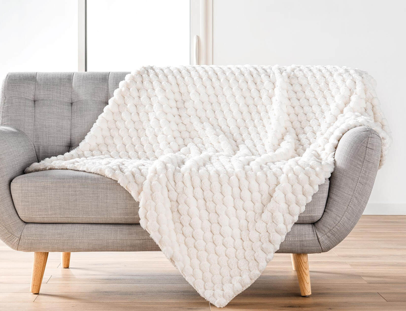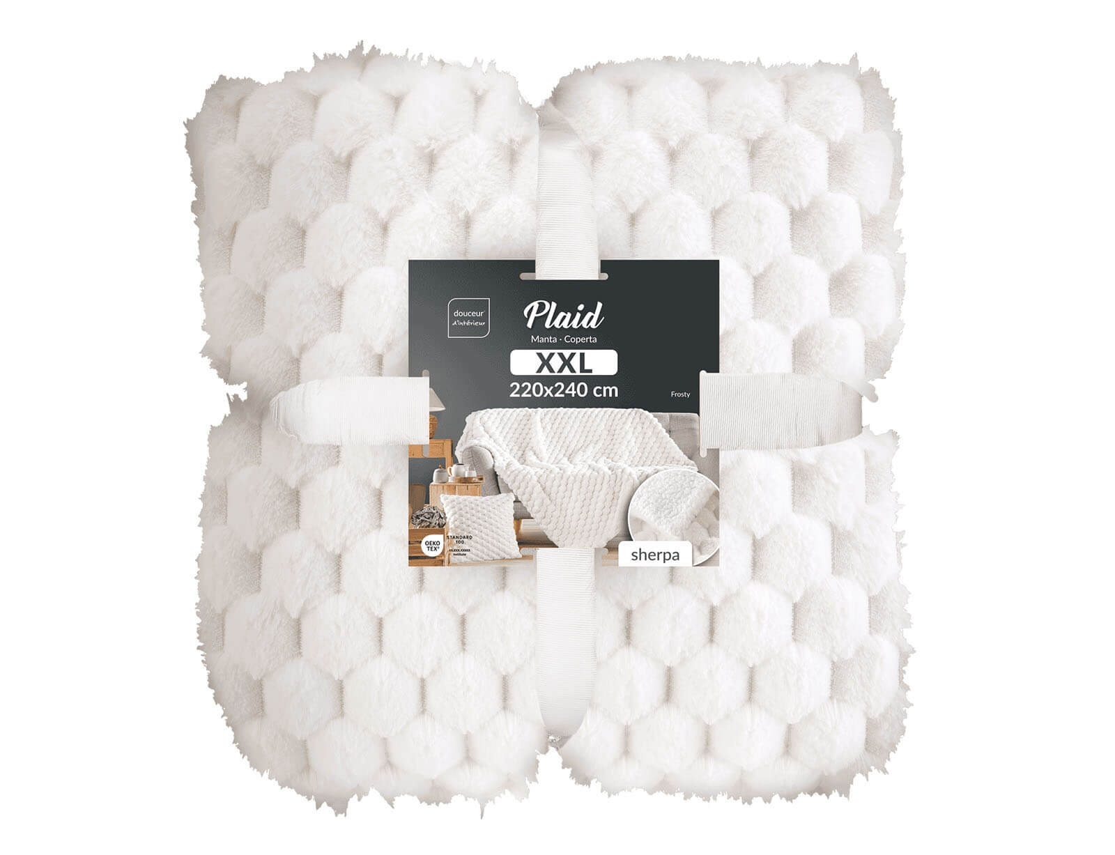 Κουβέρτα Frosty Douceur d'intérieur με εσωτερική επένδυση sherpa και διαστάσεις 220x240cm - White