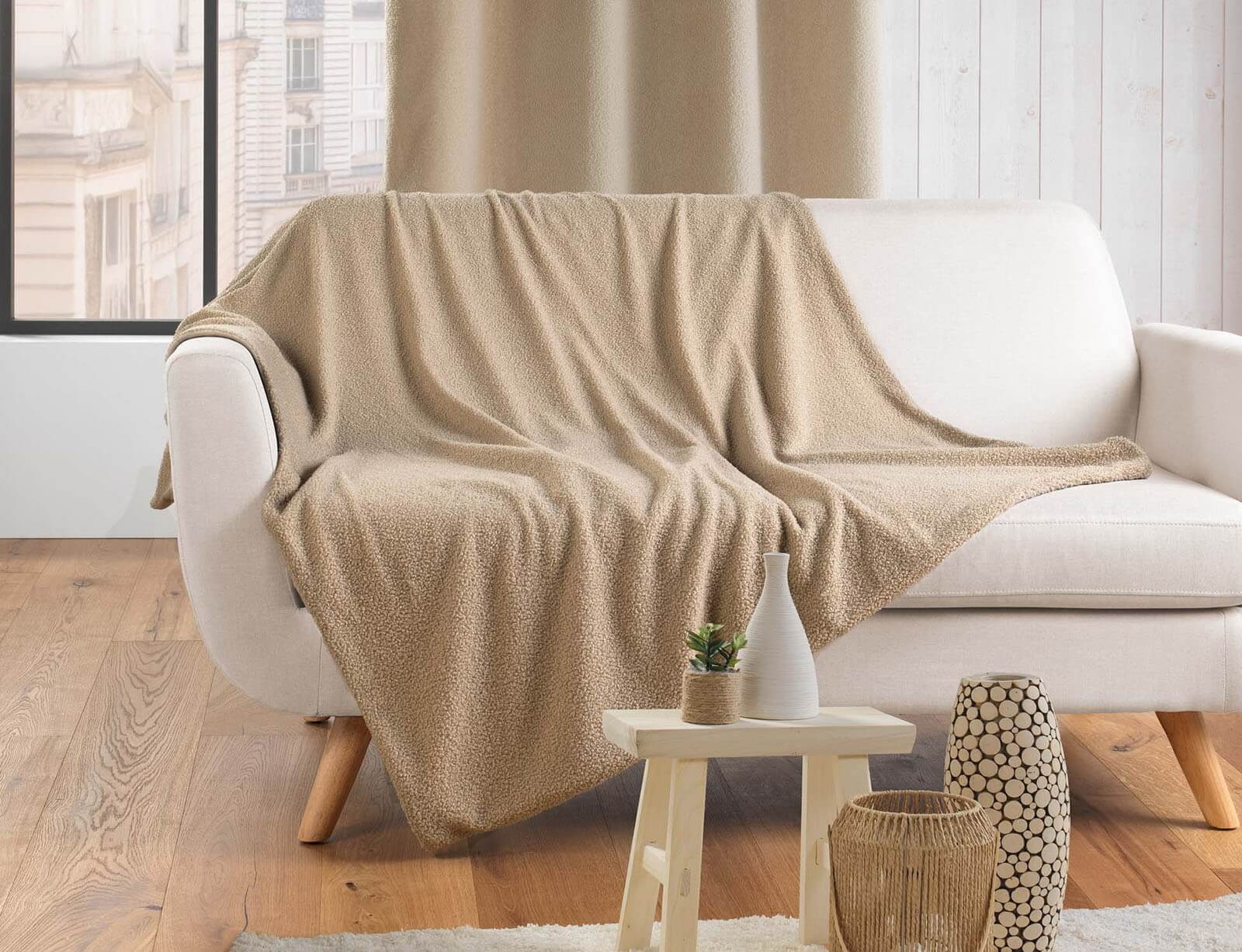 Κουβέρτα Wooly Douceur d'intérieur με επένδυση fleece και διαστάσεις 180x220cm - Beige