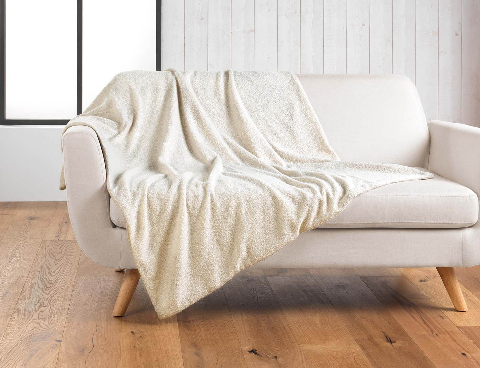 Κουβέρτα Wooly Douceur d'intérieur με επένδυση fleece και διαστάσεις 180x220cm - White