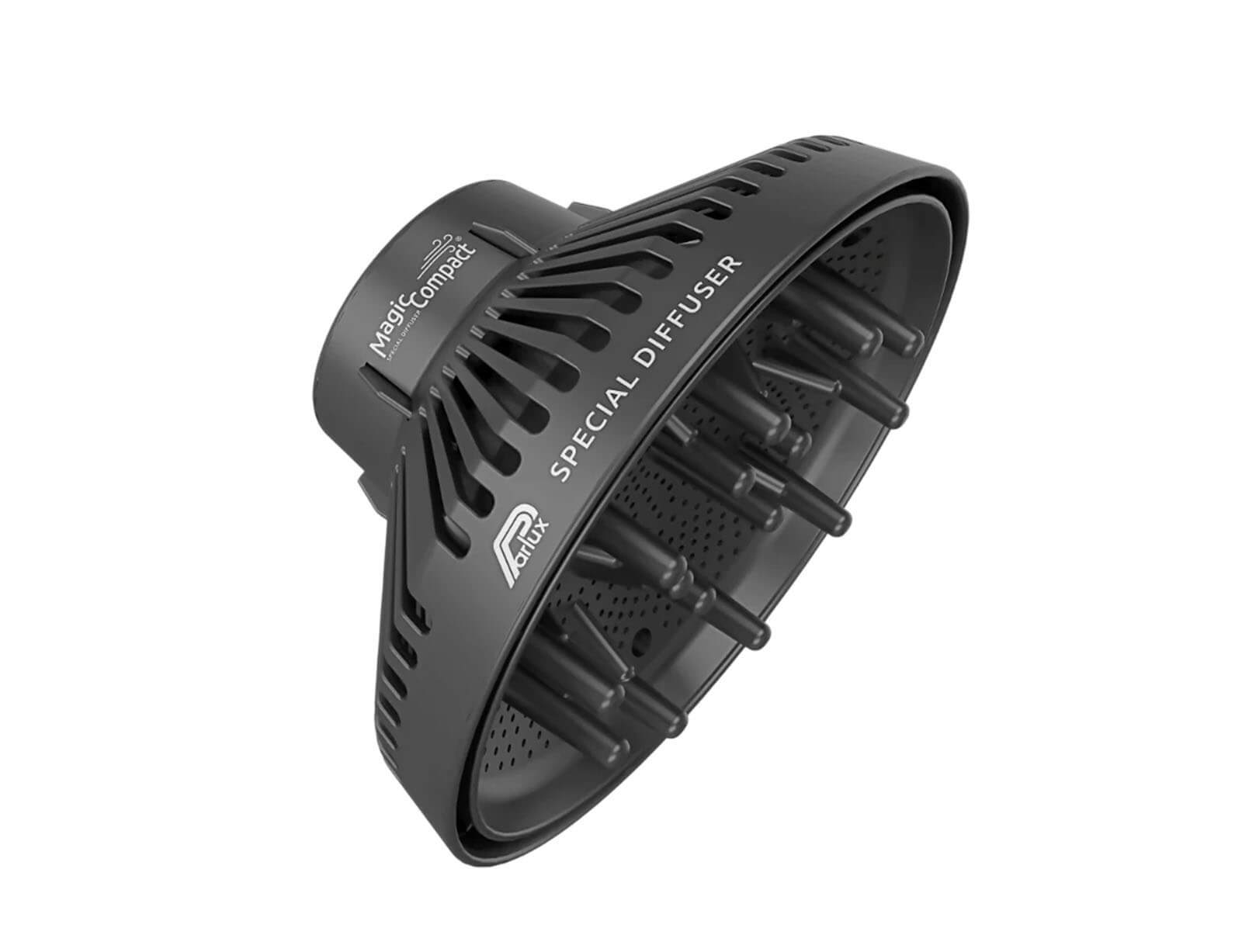Ο ιδιαίτερος καινοτόμος σχεδιασμός με εξωτερικό καπάκι εξοπλισμένο με σύστημα αντιθέρμανσης επιτρέπει μεγαλύτερη άνεση χρήσης για τον κομμωτή, ο οποίος μπορεί εύκολα να χειριστεί τον διαχύτη κατά τη χρήση, χωρίς να καεί. Επιπλέον, οι 15 ειδικές άκρες μασάζ δίνουν μια ευχάριστη αίσθηση διέγερσης στο δέρμα του πελάτη. Ο διαχύτης MagicCompact® είναι εξοπλισμένος με ένα ειδικό εξάρτημα για αποκλειστική χρήση στο Parlux ELYSIUM®, το οποίο δεν είναι συμβατό με όλα τα άλλα μοντέλα Parlux.