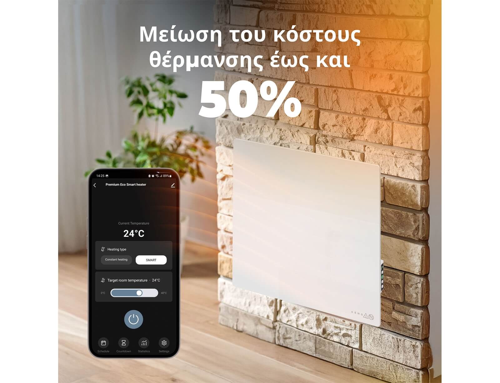 Διανέμει ομοιόμορφα τη θερμότητα και σας βοηθά να εξοικονομήσετε έως και 50% ηλεκτρική ενέργεια σε σύγκριση με τις παραδοσιακές θερμάστρες.