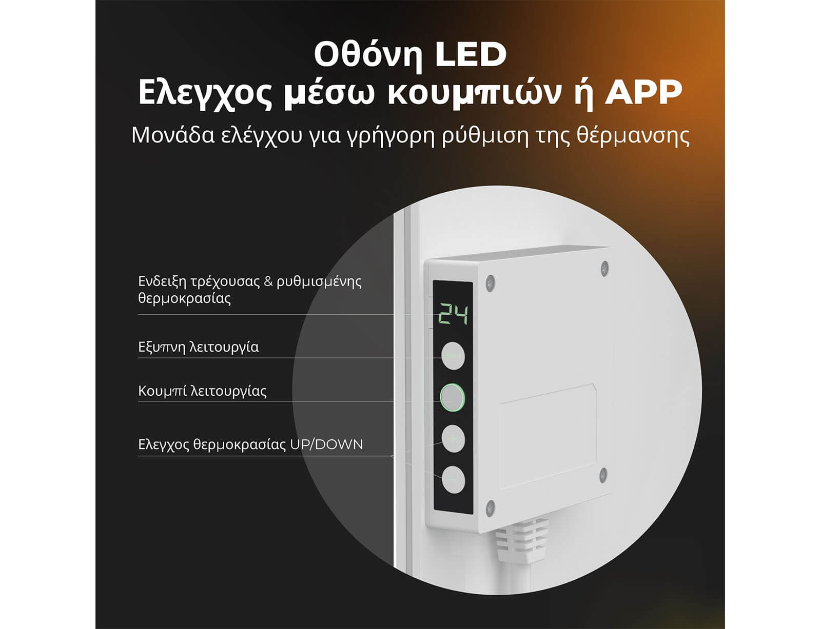 Ενεργοποιήστε τη θερμάστρα, ρυθμίστε το επίπεδο θέρμανσης, χρησιμοποιήστε τη λειτουργία SMART και παρακολουθήστε την τρέχουσα θερμοκρασία χωρίς κόπο.