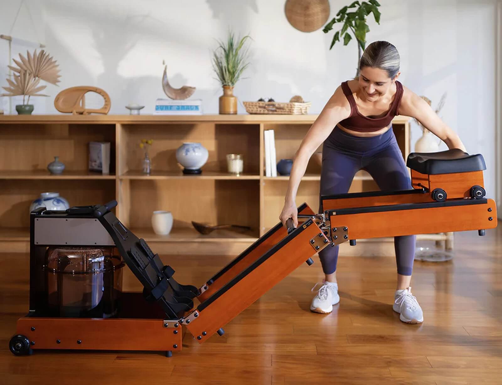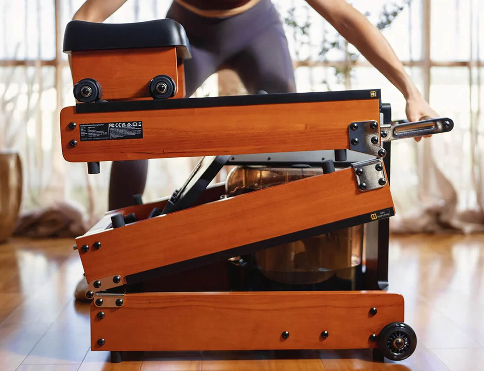 Χάρη στη μοναδική και κατοχυρωμένη με δίπλωμα ευρεσιτεχνίας τεχνολογία τριπλής κωπηλασίας, μια κωπηλατική μηχανή νερού καταλαμβάνει λιγότερο χώρο από μια καρέκλα στην τραπεζαρία. Ο μικρός όγκος αλλά η μεγαλύτερη ανθεκτικότητα προσελκύει την προσοχή πολλών ανθρώπων. Σε συνδυασμό με κυλίνδρους, η κωπηλατική μηχανή νερού είναι εύκολη στη μετακίνηση και την αποθήκευση.