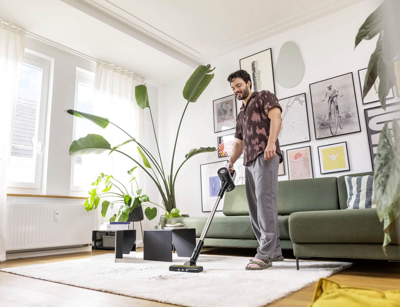 Η ασύρματη ηλεκτρική σκούπα VCS 3 Nano είναι ένας συμπαγής και ισχυρός βοηθός για καθημερινό καθάρισμα. Χάρη στην έξυπνη ανίχνευση βρωμιάς, η ισχύς αναρρόφησης προσαρμόζεται αυτόματα στο επίπεδο βρωμιάς για να εξασφαλιστεί αποτελεσματικός καθαρισμός και ο καλύτερος δυνατός χρόνος λειτουργίας της μπαταρίας. Η οθόνη ελέγχου καθαρισμού παρέχει πληροφορίες σχετικά με την τρέχουσα λειτουργία καθαρισμού και το επίπεδο βρωμιάς. Με σύγχρονη τεχνολογία κινητήρα BLDC και βελτιστοποιημένη στεγανοποίηση του ακροφυσίου δαπέδου, εγγυάται εξαιρετική απορρόφηση σκόνης από όλες τις επιφάνειες. Ο φωτισμός LED στο ακροφύσιο δαπέδου κάνει ορατή ακόμη και την πιο λεπτή βρωμιά. Η περιστρεφόμενη άρθρωση 180° προσφέρει υψηλή ευελιξία και γλιστράει ομαλά γύρω από έπιπλα και σε γωνίες. Το πολυβάθμιο σύστημα φίλτρου HEPA, το οποίο παγιδεύει αξιόπιστα το 99,9% (δοκιμασμένο σύμφωνα με το πρότυπο EN IEC 62885-4:2020/A1:2023) των σωματιδίων που απορροφώνται, εξασφαλίζει καθαρό αέρα εξαγωγής, καθιστώντας την VCS 3 Nano ιδανική επιλογή για όσους υποφέρουν από αλλεργίες. Με λιγότερο από 79 dB, η ηλεκτρική σκούπα μπορεί να είναι αθόρυβη σαν ψίθυρος, ιδανική για νοικοκυριά με παιδιά ή κατοικίδια. Φόρτιση USB-C για πρόσθετη άνεση και ευελιξία. Επιπλέον, η συσκευή μπορεί να αποθηκευτεί σε βάση τοίχου για εξοικονόμηση χώρου.